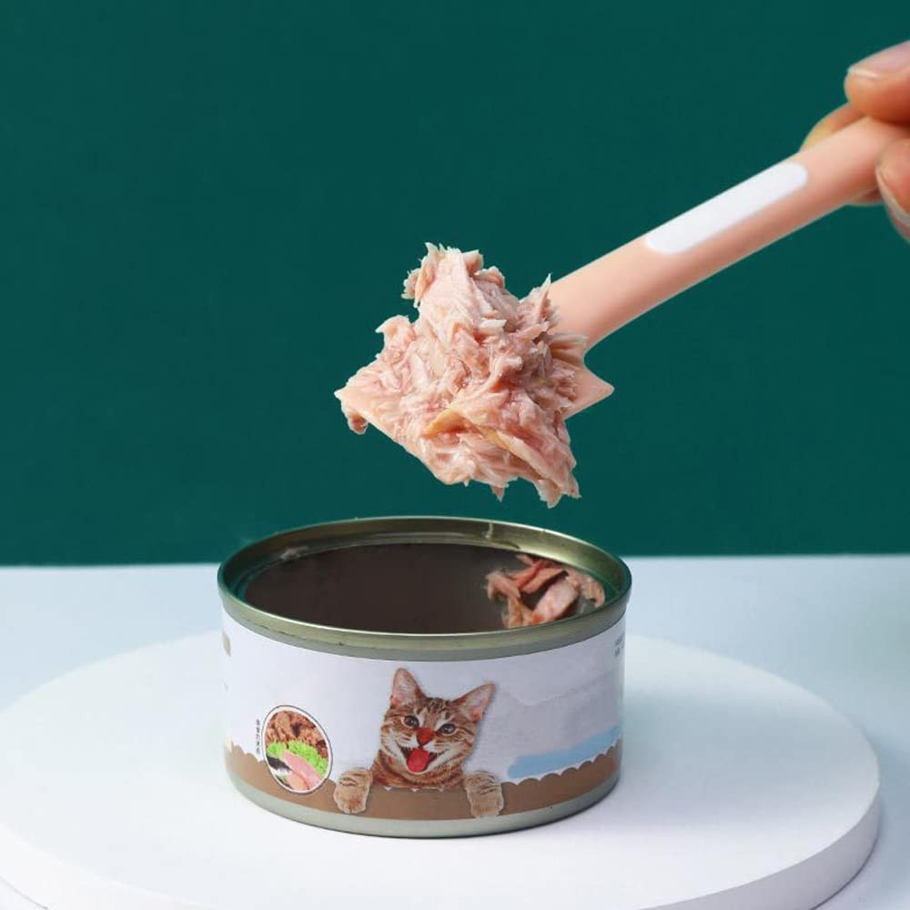 PACKAGE INCLUDE- You will get 4 pet spoons. There are 2 colors, that can meet your different needs in life. SAFE MATERIAL- The pet spoons are made of non-toxic and safe silicon material, you can use them for a long time without any harm; non-toxic, cold-resistant, and heat-resistant. SPOON HEAD DESIGN- The square spoon body design has a larger capacity and is more convenient to use. It can easily scrape the food residues in the can. EASY TO CLEAN- These dog food spoons have a smooth surface that is easy to clean with running water and is dishwasher safe. LONG HANDLE SAFE- The cat jar scoop is 6.3 inches long and 1.22 inches wide; the long handle keeps your hands away from the pointed tin edge. 4 PACK Pet Food Can Supplies Pet Food Mixing Spoons Food Canned Scoop for Pet Cat Dog Feeding Can and Wet Food Storage