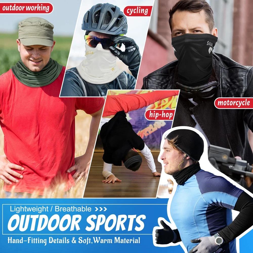 Features: Suitable for helmet liner: The motorcycle face mask avoids your entire face and neck skin from cold, wind and dust, also applicable for most helmets, such as motorcycle helmets, ski helmets, baseball helmets and more. Utility gift ideas: These balaclava face masks for skiing are feasible to be sent as practical gifts to your friends, or some other outdoor activity lovers, conveying your sincere care, love and considerate thoughtfulness. Specifications: Material: spandex Color: as pictures shown Size: one size Head circumference: approx. 23 inches/ 58 cm Length: approx. 15.7 inches/ 40 cm Package includes: 4 x Balaclava ski masks Warm notes: The words on the products are not worked as trademarks, just for decorations, our brand is . Please note the size detail information before ordering. Manual measurement, please allow slight errors on size. The color may exist a slight difference due to different screen displays. UV Sun Protection: the ski face mask for men with single hole is made of spandex, strong air permeability, water absorption and wear resistance, with sun protection function, light and portable, quite suitable for your outdoor activities One Size Fits Most: the balaclava ski mask measures about 23 inches/ 58 cm in head circumference, and the length of it is about 15.7 inches/ 40 cm, elastic and flexible, suitable for most women and men Unique Design: the ski face masks for women men adopt unique graphic designs, which get rid of the boring design of solid color style, classic colors with styled designs, adding more points to your fashion outfits in the movement 6 Wear Methods: our ski face cover for winter with full covering design has 6 wearing modes, which can be applied as a full cover protection, revealing only the eyes for observation; It can be also worked as a half mask, neck gaiter, headband, mask and ear mug More Purposes: this sort of men women balaclava is suitable for a variety of activities, such as fishing, running, cycling, racing, skiing, mountaineering, hiking trips, cooking, tactical training, shooting, hunting and many other outdoor activities