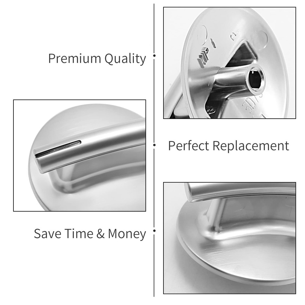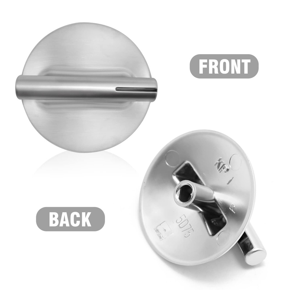 Replaces the following parts : 74010839, WP74010839, AP4100128, AP6011218, 1156711, 7737P372-60, AH2088183, EA2088183, PS2088183, PS11744413, WP74010839VP, WPL74010839. Replacement for brands and models include but are not limited to: JED8430BDB, JED8430BDS, JED8430BDF, JED8430BDB18, JED8430BDF18, JED8430BDS18. Specifications: Material: Plastic with a chrome finish Product Dimensions: 2.0"Φx 1.35"H (50 x 34 mm) Diameter of install hole: 0.25" (6.3 mm) Quantity: 4 Pieces Color: Silver Fixes the following symptoms: Cooktop will not set Will not turn Will not stay on Replacement for - Replaces part number: 74010839, WP74010839, AP4100128, AP6011218, 1156711, 7737P372-60, AH2088183, EA2088183, PS2088183, PS11744413, WP74010839VP, WPL74010839. Widely Applicable - These knobs are replacement for most Jenn-Air Cooktops including JED8430BDB, JED8430BDS, JED8430BDF, JED8430BDB18, JED8430BDF18, JED8430BDS18.Before buying, Please confirm the size. Easy Installation - Without using any installation tools, simply remove the original knob (not bent up or down the knob), and replace it with our new 74010839 stove control knob. Premium Quality - exact equivalent meets or exceeds original manufacturer specifications. Product Specifications - Package includes: 4 × 74010839 control knobs replacement for jenn-air cooktop burner. Size: 2.0 inch/ 5.08 cm in diameter, 1.4 inch/ 3.56 cm in height, 0.2 * 0.3 inch/ 0.51 * 0.76 cm in the interface NOTE: The 74010839 cooktop knob does not have "close" and "ignite" labels, it is closed at a non-90 degree. And 74010839 knob replacement for jenn-air maybe point downward when it is closed, but this phenomenon will not affect daily use