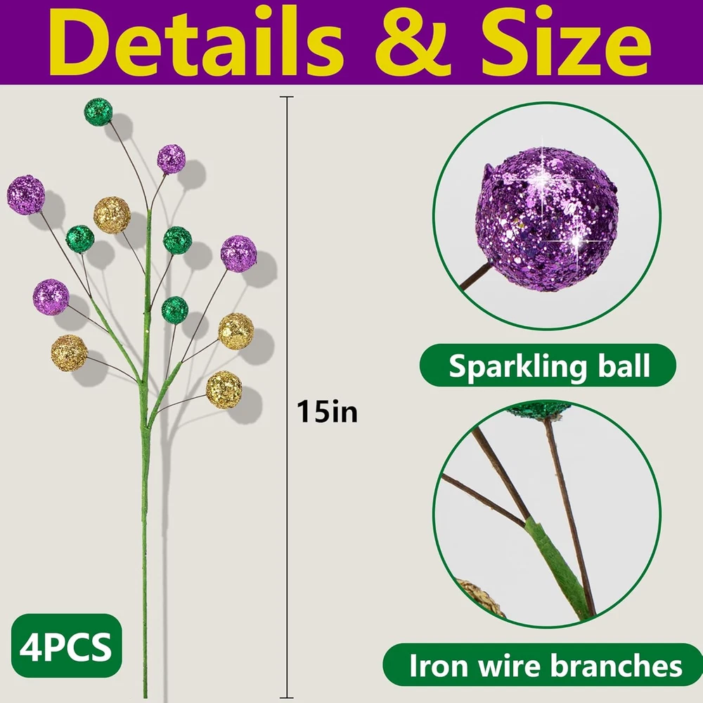 Store New Arrivals Add to Favorite View Feedback Contact Fast deliveries to the customer's home Quality customer service John Make the customers happy! 4 Pcs Mardi Gras Ball Centerpiece Stems- 15" Mardi Gras Artificial Glitter Berry Stems Ornaments- Shiny Purple Gold Green Berry Branches Twigs Picks Sprays for Carnival Party Home Decoration Description Package Includes: You will receive 4 pcs Mardi Gras balls stems centerpiece, each 15 inches tall overall, and you can also cut or bend their stems as needed, easy to insert in a vase, meet your Mardi Gras home party decoration. (Vase not included) Festive Color: The Mardi Gras glitter ball sprays have sparkling foam balls of purple, gold and green on their stems, designed in classic Mardi Gras colors that will not fade, to decorate the home, theme parties and add to the festive atmosphere. DIY Decoration: These Mardi Gras decorations berry sticks twigs picks can easily be placed anywhere, and you can get creative and DIY as you like, as vase fillers, making flower arrangements, garland, wreaths, etc., to add vitality. Quality Material: Our Mardi Gras artificial berry stems are made of foam balls covered with glitter and iron wire branches, lightweight, strong and not easy to damage, can be exposed to the sun and rain, and can be used for a long time. Widely Used: Our Mardi Gras glitter branches stems ornaments can be placed on vases, trees, fireplaces, doorways, etc., to decorate parties, tables, gift boxes, DIY crafts, wreaths, etc., indoors and outdoors, great for your Mardi Gras themed ornaments. Product Description Item model number WAT-Mardi-Gras-Ball-Stems-4Pcs Plant or Animal Product Type Artificial plant Color 4 Pcs Product Dimensions 1"D x 1"W x 15"H Material foam, iron wire Country of Origin China ABOUT US We offer the best prices around on high quality products. Our E-store includes media such as books, movies, music and games while offering electronics, toys, sporting apparel, clothing, tools, general home, garden items and more. SHIPPING We are always working hard to ensure your package arrives as soon as possible. Please understand that some factors like weather, high postal traffic, and the performance of shipping companies are outside of our control. We offer free shipping to the lower 48 states and ship within 2 business days of payment, usually sooner. We do not accept P.O. Boxes. Please provide a physical address. For shipping outside of the continental USA, we only use eBay's Global Shipping Program. The item is shipped to KY and then sent to the rest of the world. International customers are responsible for all duties and taxes. Continue to 'check out' to calculate costs for shipping the item to your country. Messages regarding eBay's Global Shipping Program MUST be directed at eBay EXCLUSIVELY. RETURNS We offer a 30-Day Return Policy on items in which you are not completely satisfied with. You have the option of a full-refund or an exchange of the item. No returns are available on items shipped outside of the USA PAYMENT We accept PayPal. CONTACT US This page content is yet to come Please ad us to your favorite seller and visit again later Thank You CUSTOMER SATISFACTION We try our very best to make sure every customer is completely satisfied. If there's a problem, message us! We're happy to help. WE ACCEPT