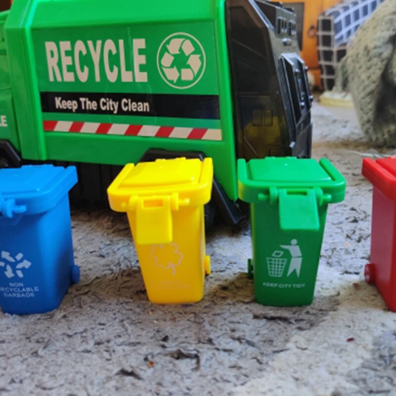 4 Pcs Mini Trash Can Toy Push Vehicles Garbage Cans Curbside Vehicle Garbage Bin for Kids Toddlers specification: 100% new and high quality Material:ABS Color:red,yellow,blue,green Size:6*4.5*6.5cm Recommend Age: 4+y Features: MINI SIZE: the mini toy trash cans are made according to the garbage cans in daily life, there are 2 wheels at the bottom of the trash can, which can roll, and the lid of the dustbin can be opened, vivid and cute APPLICATION: Perfect birthday or Christmas gift for children who are obsessed with garbage trucks and cans, a great addition to kids garbage truck collections and party favors Package include : 4 Pcs Mini Garbage Cans Toy Note: There is 2-3% difference according to manual measurement. Please check the measurement chart carefully before you buy the item. Please note that slight color difference should be acceptable due to the light and screen. Preview: