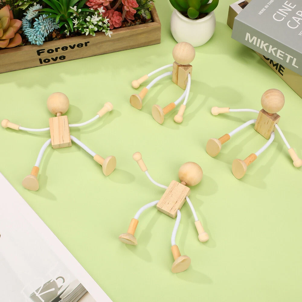 4 Pcs Peg Dolls Unfinished Toy Figure Wooden Toys Educational DIY Baby Child