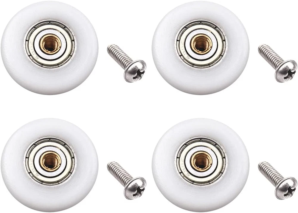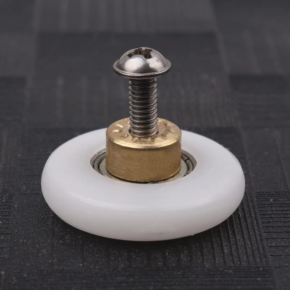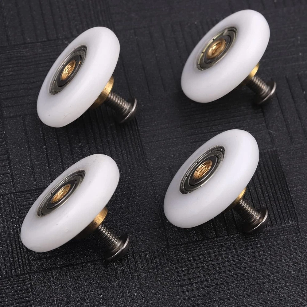 1. The Shower Door Rollers is made of copper and POM wheel, and the screw is made of stainless steel, which is corrosion-resistant, rust-proof and has good comprehensive performance. 2. The Shower Door Rollers has strong bearing capacity and good stability; the friction coefficient is small and the mute effect is good. 3. Easy to install, often used for bathroom glass sliding door pulleys/rails. Roller wheel diameter:23mm Comes with screws, suitable for 4-6mm thick shower doors. Roller wheel inner hole: 4mm, fixed with M4 screws. Roller wheel thickness: 5.8mm, Package included: 4 pcs Shower Door Rollers Runners Wheels (Note: Please measure the size you need before buying to choose the right size.) Product Description Note: Please measure the size you need before buying to choose the right size. Atoplee 4 pcs Shower Door Rollers Runners Wheels - Replacement Part Bathroom Glass Door Runner Sliding Shower Door Roller Wheel -Roller Diameter 23mm The Shower Door Rollers is made of copper + POM wheel, and the screw is made of stainless steel, which is corrosion-resistant, rust-proof and has good comprehensive performance. The Shower Door Rollers has strong bearing capacity and good stability; the friction coefficient is small and the mute effect is good. Easy to install, often used for bathroom glass sliding door pulleys/rails. Roller wheel diameter:23mm Comes with screws, suitable for 4-6mm thick shower doors. Roller wheel inner hole: 4mm, fixed with M4 screws. Roller wheel thickness: 5.8mm