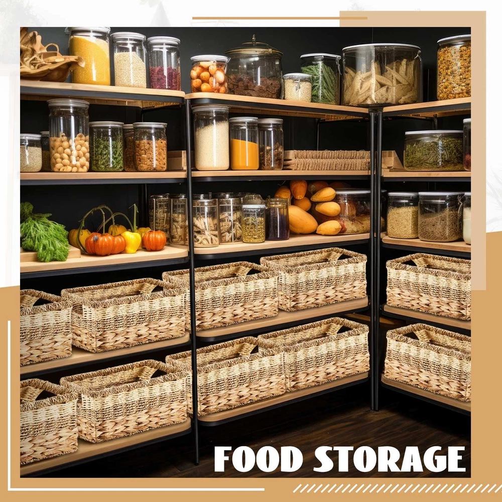 Features: These wicker cube storage bins make for thoughtful gifts considering their delicate appearance and functionality. When gifting to friends or family members, they will not only receive attractive home decoration pieces, but also functional storage items that are suited to a wide range of interior styles. The wicker baskets for organizing features classic colors and graceful appearance, making an attractive and practical addition. Their stylish style blends effortlessly with most interiors, enhancing the overall aesthetics. Specifications: Material: water hyacinth, seagrass, paper rope, metal Color: shown as the picture Size: about 12 x 8 x 6.3 inches/ 30 x 20.5 x 16 cm Package includes: 4 x Wicker storage basket Notes: Manual measurement, please allow slight errors on size. The color may exist a slight difference due to different screen displays. Sophisticated Colors and Design: this wicker storage basket features classic and elegant colors, crafted from natural materials, delicate and exquisite, not only serving as a practical storage item but also enhancing the aesthetic appeal of your space with their charming and elaborate designs Enough Quantity for Your Needs: this package includes 4 wicker baskets for shelves, offering multipurpose use for your storage needs; Whether it is for organizing your living space or to create a tidy workspace, these baskets allow ideal organization, enhancing your productivity and efficiency Quality Materials for Durability: the wicker storage cubes are made of water hyacinth, seagrass, and paper rope, strengthened with the metal frame, providing structural sturdiness and durability, handmade and lasting; The harmonious blend of these quality materials ensures the durability and longevity of the basket, making it reliable for extended use; Simply wipe with damp towel and let dry, avoid using strong detergents Compact Dimension for Easy Storage: with dimensions of about 12 x 8 x 6.3 inches/ 30 x 20.5 x 16 cm, these water hyacinth storage baskets offer ample storage without taking up too much space, suitably shaped to accommodate a variety of items, ensuring a tidy environment and organized living area, designed with the useful handle, providing a comfortable grip for easy transportation Versatile Application Across Occasions: the wicker baskets for storage can be applied in numerous occasions; Be it dining rooms, bedrooms, bathrooms, or even offices, these baskets provide a trendy and elegant touch while offering functional storage and organization solutions