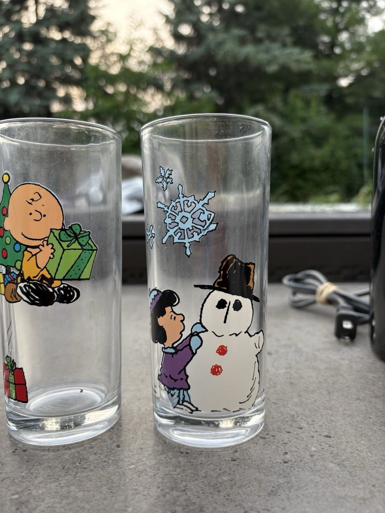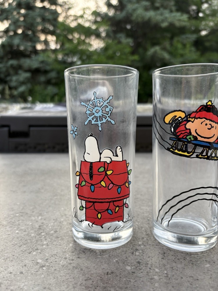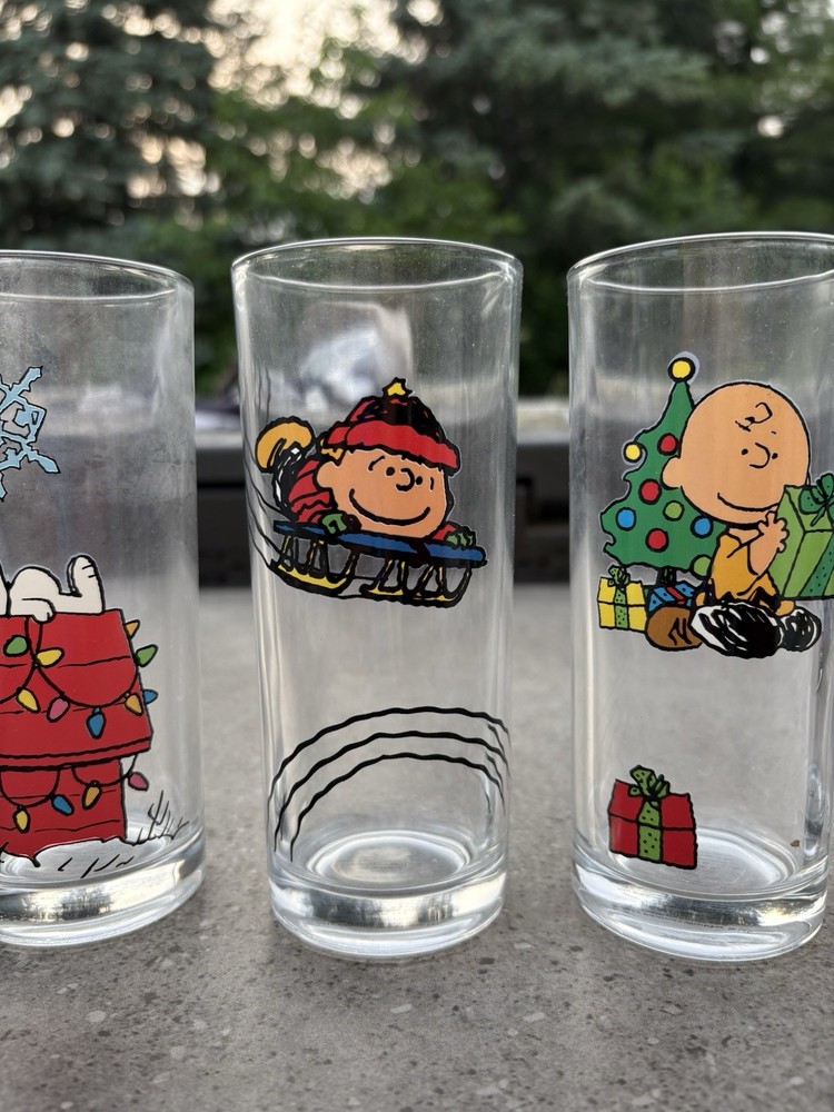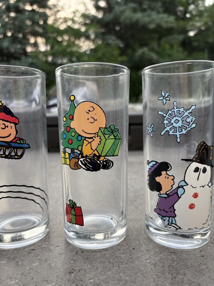 These vintage Snoopy glasses are such a fun holiday find! The Peanuts characters look adorable, and three have perfect prints—only one has a slight fade. No chips or cracks, just cheerful nostalgia in great used condition. Perfect for hot cocoa or holiday decor!