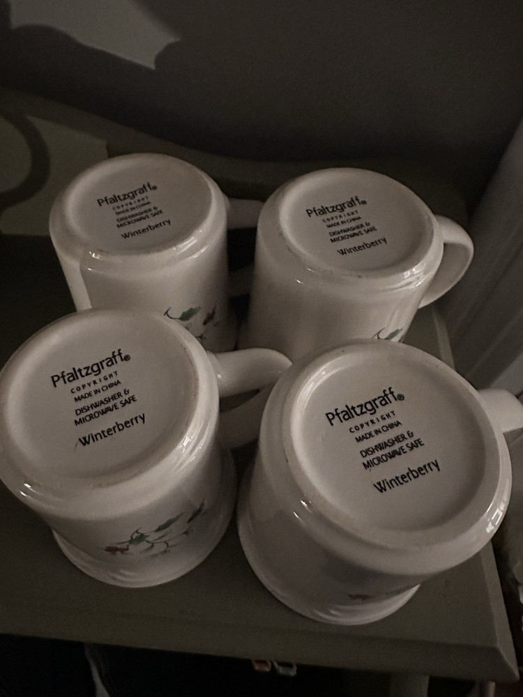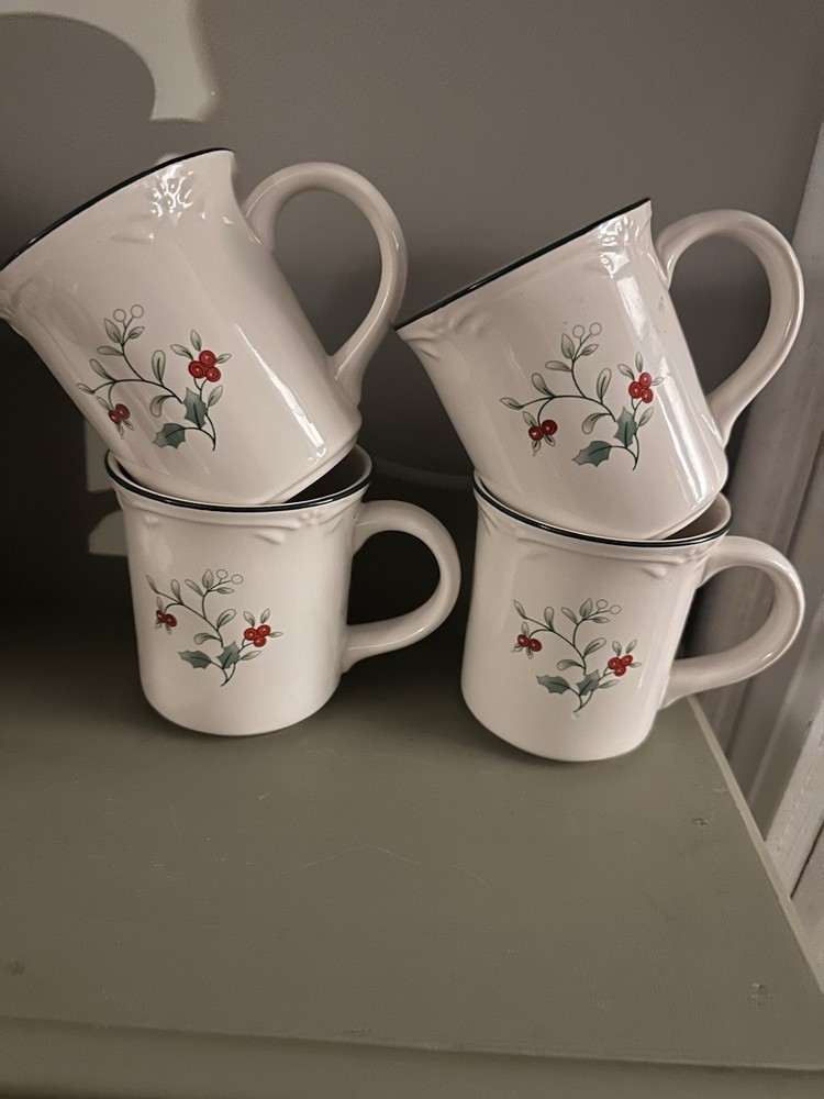 The Pfaltzgraff Winterberry Christmas Mugs are a set of four 12 oz round stoneware mugs featuring a festive Winterberry pattern. These colorful mugs are microwave and dishwasher safe, making them perfect for holiday gatherings or everyday use. These mugs add charm to any Christmas table setting. Stunning Pfaltzgraff Winterberry mugs in excellent used condition. I ship out the same day if possible, or the very next business day. Thank you for stopping by!! 🎄