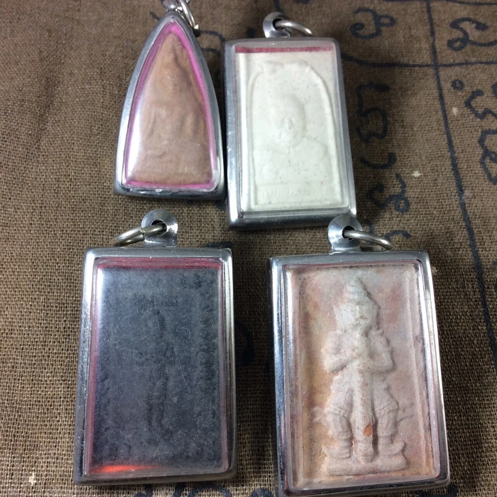 4 Phra Thai Buddha Amulet OLD Pendant Holy Clay Powder SACRED Talisman Magic f9