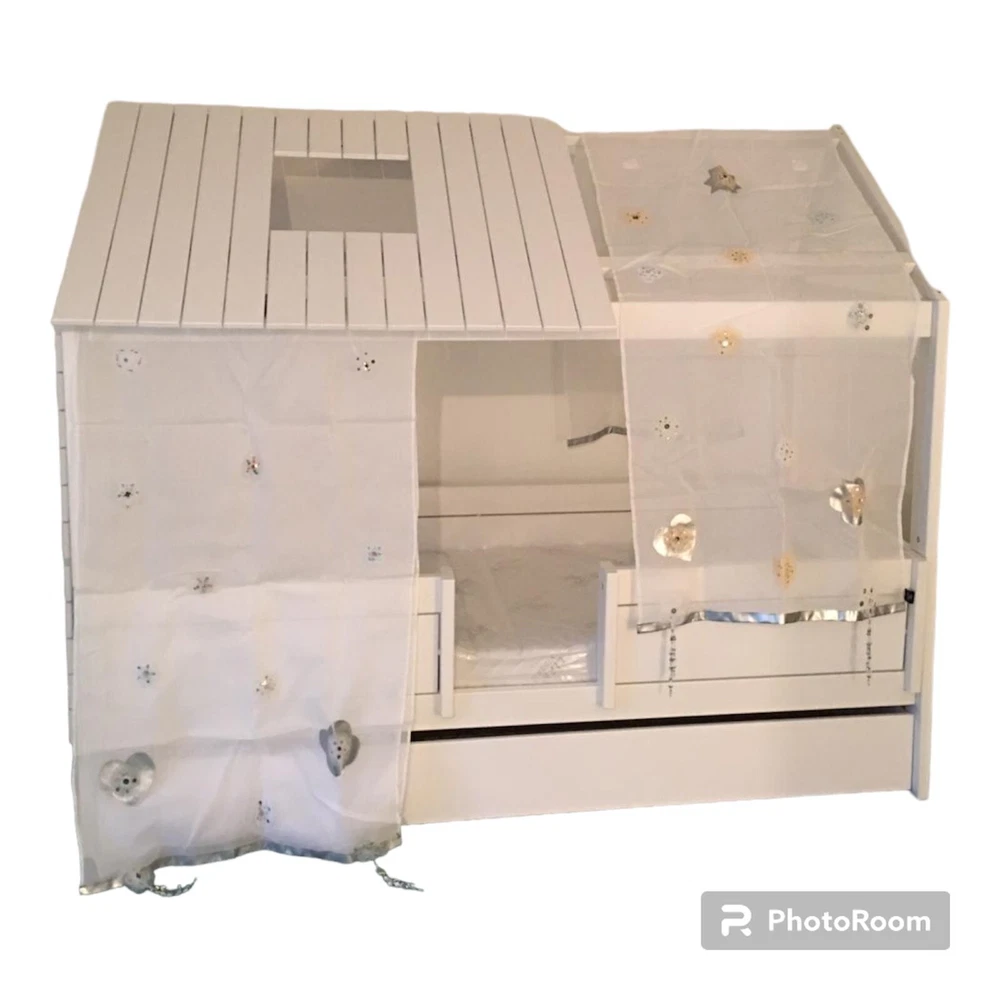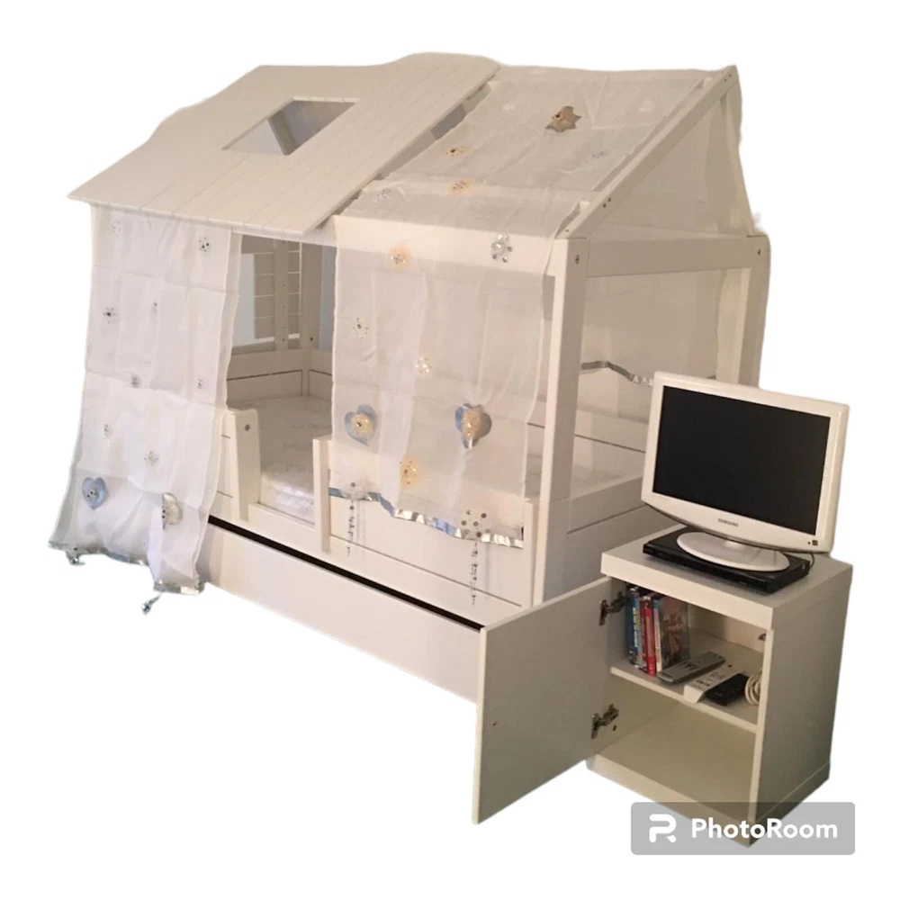 Give your child the perfect sleeping space with this white indoor bed set. Made from high-quality wood and painted with a smooth finish, this bed is sturdy and durable. The bed comes with a twin-sized mattress and features a firmness that will provide the right amount of support for your child's growing body.Assembly is required, but with easy-to-follow instructions, it can be completed quickly. The bed also comes with a curtain that adds a touch of charm and privacy to your child's sleeping area. Care is easy, simply clean with a damp cloth. This bed is perfect for any child's room and will provide a comfortable sleeping space for years to come.