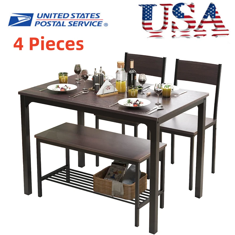 4 Piece Dining Room Table with Storage Rack for Small Spaces Bench and Chairs Extra Storage Space: The dining table set features a storage shelf beneath the bench, providing additional space for your daily necessities and helping to keep your dining area organized Exceptional Craftsmanship: Constructed from P2-grade PB board and a heavy-duty metal frame, this kitchen table set ensures superior stability and durability. The powder-coated iron surface enhances its resistance to rust and wear Space-Saving Design: This table set includes a dining table, two chairs, and a bench. You can effortlessly tuck the chairs and bench underneath the table after meals to save space in your dining area Multifunctional Use: Suitable for any occasion, this kitchen table chairs set of 4 is not only ideal for meals but also serves as a computer desk, office desk, or writing table, making it an excellent addition to your home Easy Assembly: The dining table with bench come with detailed installation instructions and a toolkit, ensuring a hassle-free setup so you can enjoy your new kitchen table set in no time Payment Delivery Returns Feedback We accept Payoneer only. All major credit cards are accepted through secure payment processor PayPal. Payment must be received within 7 business days of auction closing. If you have bought multiple items from me, you can send me one payment for all the items instead of paying for them individually. When you click the Pay Now button, eBay will automatically determine if there are other items you have won or purchased from me and will combine them for your review. NOTE: Import duties, taxes and chargers are not included in the item price or shipping charges. These charges are the buyer's responsibility. Please check with your country's customs office to determine what these additional costs will be prior to bidding buying. 1. We will delivery out at the handing time when we receive the payment. 2. The delivery time is 3-5 business days to US by usually time.The parcel maybe delay 1-2day of the weekend.Due to the bad weather,Holidays,Hot Season ect.the parcel maybe delay,If you have any problems,mssage us,we will try our best to solve it. 3. We ship to your eBay address. Please make sure your eBay address is correct before you pay. 4. If you want to change the shipping address,message us before our send out. 5. We cannot deliver your order if your state is PR. 1. If you donot receive the items at the delivery time,the parcel has broken/missing,Please message us before you open case/return,we will try our best to solve it. 2. We offer a 30 day return policy from checkout winning date. 3. An RMA number is required for all returns. Message us for return instructions. Items Returned without a RMA number will not be processed. 4. Items defective upon receipt must be packaged in their retail packaging as if new and returned with a detailed description of the problem. 5. Return shipping fees are not refundable.We reserve the right to decline any returns if the above guidelines are not followed. If you are not satisfied with the item for any reason, please do not quick to leave negative/neutral feedback even open request and case without any communication with us. We devote ourselves making EVERY CUSTOMER in 100% Satisfactory and resolve any problem. Thank you for your understanding and recognition,we are always leave positive feedback to all our customers. About Reply: All replies will be sent to your email box, if you do not get response within 24 hours (Sat. & Sun. excluded) please check your eBay My Messages in case that our emails will be filtered automatically by your settings.