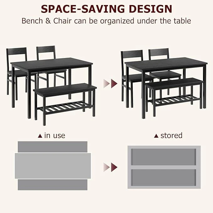 4 Piece Dining Room Table with Storage Rack for Small Spaces Bench and Chairs
