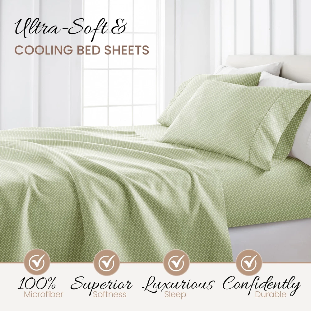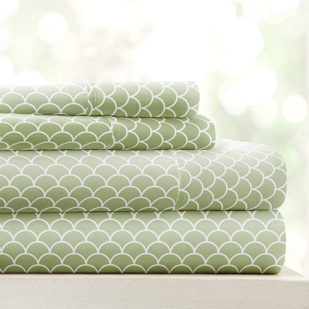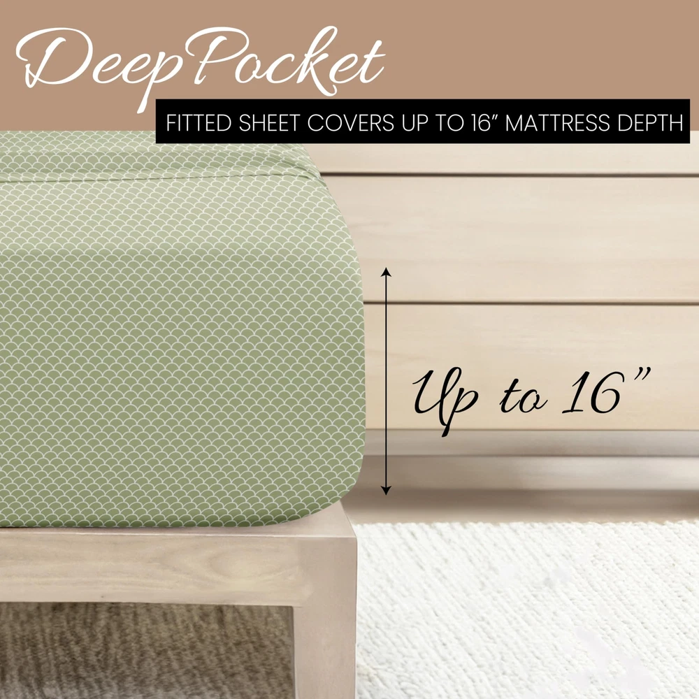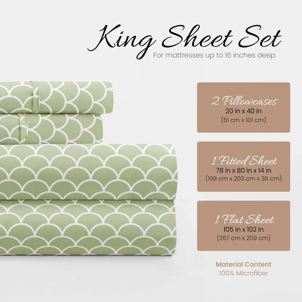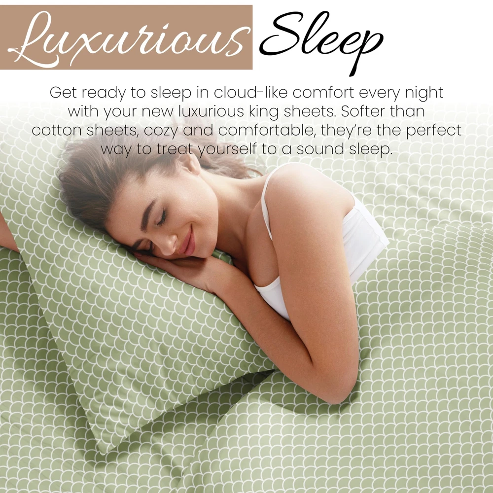 4 Piece King Bedding Sheet Set (Sage Scallops) - Sleep Better Than Ever with ...