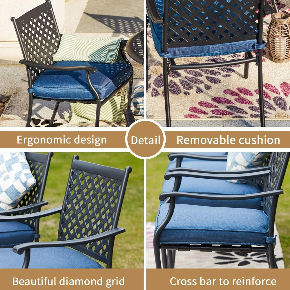 Store New Arrivals Add to Favorite View Feedback Contact 4 Piece Metal Outdoor Wrought Iron Patio Furniture,Dinning Chairs Set with Arms and Seat Cushions (4 PC, Blue) Description Age Range Description Adult Style Modern Cushion Style Boxed Edge Pattern Solid Material Type Iron, Metal Is Electric No Seat Height 16.1 Inches Frame Material Alloy Steel Seat Material Type Plastic Finish Types Polished Arm Height 24 Inches Item Shape Diamond Unit Count 4.0 Count Room Type Dining Room, Patio Garden Brand Name Top Space Brand Top Space Is Customizable? No Tilting No Material Iron, Metal Item Weight 52.2 Pounds Maximum Weight Recommendation 330 Pounds Furniture Base Movement Glide Frame Material Alloy Steel Arm Style With arms Leg Style Straight Leg Manufacturer TOP Space Back Style Ladder Back Item Weight 52.2 Pounds Surface Recommendation Hard Floor Special Features Arm Rest, Cushion Availability Seat Material Plastic Color Blue Item Dimensions D x W x H 23.6"D x 22.4"W x 34.6"H Furniture Finish Plastic Indoor Outdoor Usage Outdoor Is Foldable No Recommended Uses For Product Dining Included Components User Manual, Installation Hardware Product Dimensions 23.6"D x 22.4"W x 34.6"H Seat Depth 18.5 inches Size Large STACKABLE FOR OUTDOOR: With stackable design, these patio dining chairs a nice addition to dining room since they're easy to store or set aside when they're not in use. Plus, plastic floor glides down below help prevent them from scratching your floors or deck. The standard height can perfectly fit other table and dining set, chair can push in table. This modern patio dining chair will bring style to your backyard, porch, or patio; a furniture piece perfect for your dining ensemble. WIDE AND DEEP SEAT: The slightly slanted seat back will fit your body line perfectly and ensure a relaxing seat for hours. Firm and wide seat, 3.1" thick soft seat and curved arm make the patio dining chair are more comfortable than the normal metal patio chairs. Seat cushion is connected to the chair with two hook-and-loop fasteners. Removable is easy for cleaning. All of them are of super quality for no slide,no sunken after a long time use. You can sit, stretch your legs. STURDY AND DURABLE:The 4 Piece stackable patio dining chair is not only a beautiful addition, but also is a durable option that to withstand the weather. This patio dining chair is built with an galvanized steel frame, covered with smooth black polished paint. Designed to hold up to everyday use without chipping, scratching, or peeling. All pieces of this stacking patio chairs set are lightweight, allowing for effortless maneuvering when a layout change is in the works. EASY TO ASSEMBLE: The holes line up and you can use the hand tools or your cordless drill to set them up. Pls do not overtighten the patio dining chair when last step is finished. With our clearly manual, it's easy to assemble it, just need some times. 4 Pieces patio dining chair : 22. 4"(L)*23.6"(W)*34.6"(H). Max capacity: 330LBs OUTDOOR DINING CHAIRS: This outdoor chairs set included 4 outdoor dining chairs, all necessary hardware and instructions included for efficient and eazy assembly. Decorations are not included.Pls check description for more details. The four (4)-piece Stacking Patio Dining Chair Set, featuring a sturdy, black powder-coated steel frame, makes a perfect addition to seating groups both inside and out. It can be adapted to any interior and imbue your home with vintage flair and urban sophistication. With stackable design, these patio dining chairs are an ideal option for entertaining outside since they're easy to store or set aside when they're not in use. Plus, plastic floor glides down below help prevent them from scratching your floors or deck. ABOUT US We offer the best prices around on high quality products. Our E-store includes media such as books, movies, music and games while offering electronics, toys, sporting apparel, clothing, tools, general home, garden items and more. SHIPPING We are always working hard to ensure your package arrives as soon as possible. Please understand that some factors like weather, high postal traffic, and the performance of shipping companies are outside of our control. For shipping outside of the continental USA, we only use eBay's Global Shipping Program.The item is shipped to KY and then sent to the rest of the world. International customers are responsible for all duties and taxes. Continue to check out in order to calculate costs for shipping the item to your country. Messages regarding eBay's Global Shipping Program MUST be directed at eBay EXCLUSIVELY. RETURNS We offer a 30-Day Return Policy on items which you are not completely satisfied with. You have the option for a full-refund or an exchange of the item. No returns are available on items shipped outside of the USA. PAYMENT We accept PayPal. CONTACT US This page content is yet to come Please ad us to your favorite seller and visit again later Thank You CUSTOMER SATISFACTION We try our very best to make sure every customer is completely satisfied. If there's a problem, message us! We're happy to help. WE ACCEPT Copyright © 2021 AutoDS. | All Rights Reserved