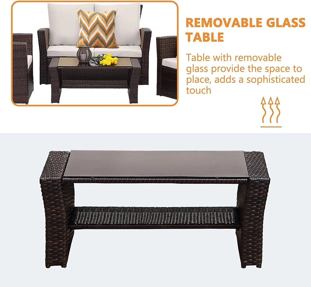 Store New Arrivals Add to Favorite View Feedback Contact 4 Piece Patio Furniture Sets, All-Weather Wicker Conversation Sets, Outdoor Rattan Sectional Sofa Chair with Cushions and Coffee Table for Balcony, Garden, Backyard, Brown Description Item model number KX-005BR Manufacturer May in Color Item dimensions L x W x H 47.6 x 26 x 30.29 inches Color Brown Country of Origin China Product Dimensions 47.6 x 26 x 30.29 inches Material Wicker Item Depth 48 Item Weight 60.3 pounds Assembly Required Yes Shape Rectangular,Square Item Weight 603 Pounds Style Modern Is Discontinued By Manufacturer No Brand May in Color Product Care Instructions Wiper with Dry, Wipe with Damp Cloth Size Onesize 【Sturdy & Durable Outdoor Patio Furniture】This 4-piece outdoor patio furniture set features premium PE rattan and a sturdy powder-coated steel frame that will withstand any weather change, giving you years of outdoor living. Perfect for a balcony, lawn, garden, or poolside! 【Comfortable Sitting & Modern Style】 Combined with 3-inch seat back cushions and ergonomic backrest, this patio conversation set make it more comfortable for you and your family to spend time outside. Moreover, this patio set for 4 has a timeless grey finish that will enhance the outside area's visual appeal. 【Easy Maintenance】The cushion cover can be removed with ease thanks to the zipper design, and the splash-proof material is simple to clean. Regarding the tempered glass top, you can clean it by soaking a towel in fresh water. To clean a difficult-to-remove stain, soak the towel in water at 100°F. 【Sectional Conversation Set】This four-sofa sectional set may be assembled in a variety of ways and is separable. You can alter the sofa's position to fit different room sizes based on your needs. 【What’s Included】The outdoor furniture couch set includes 1 x Loveseat measuring 48" x 26"x 30.3", 2 x Armchairs measuring 28.4"x 26.4"x 30.3", and 1 x Coffee Table measuring 34.3"x19.7"x13.8". The ideal method to take advantage of the warm weather outside! Product Description This is our rattan patio conversation set which will provide you a comfortable experience in your leisure time. If you are looking for such a rattan bistro set, this will be your ideal choice! This set of outdoor furniture is made of high-quality rattan and strong steel, which is durable and has a long service life. The thick soft cushions are comfortable and breathable, which can relieve your fatigue of the whole day. Removable seat covers and tempered glass table tops are easy to clean. Modern and stylish lines make this furniture set a perfect embellishment for backyard, patio, balcony or any other outdoor space! Specifications: Materials: PE Rattan, Steel, Sponge, Polyester Color: Brown Weight Capacity: 250 Pound Size of Chair: 28.4" x 26.4" x 30.3" (L x W x H) Size of Table: 34.3" x 19.7" x 13.8" (L x W x H) Size of Loveseat: 48" x 26" x 30.3" (L x W x H) Package Including: 1 x Loveseat 2 x Armchairs 1 x Coffee Table 8 x Cushions 3.1 inches wide armrest for more relaxation High backrest for great comfort Removable glass top make it easier to clean Removable cushion cover for easy maintenance ABOUT US We offer the best prices around on high quality products. Our E-store includes media such as books, movies, music and games while offering electronics, toys, sporting apparel, clothing, tools, general home, garden items and more. SHIPPING We are always working hard to ensure your package arrives as soon as possible. Please understand that some factors like weather, high postal traffic, and the performance of shipping companies are outside of our control. For shipping outside of the continental USA, we only use eBay's Global Shipping Program.The item is shipped to KY and then sent to the rest of the world. International customers are responsible for all duties and taxes. Continue to check out in order to calculate costs for shipping the item to your country. Messages regarding eBay's Global Shipping Program MUST be directed at eBay EXCLUSIVELY. RETURNS We offer a 30-Day Return Policy on items which you are not completely satisfied with. You have the option for a full-refund or an exchange of the item. No returns are available on items shipped outside of the USA. PAYMENT We accept PayPal. CONTACT US This page content is yet to come Please ad us to your favorite seller and visit again later Thank You CUSTOMER SATISFACTION We try our very best to make sure every customer is completely satisfied. If there's a problem, message us! We're happy to help. WE ACCEPT Copyright © 2021 AutoDS. | All Rights Reserved