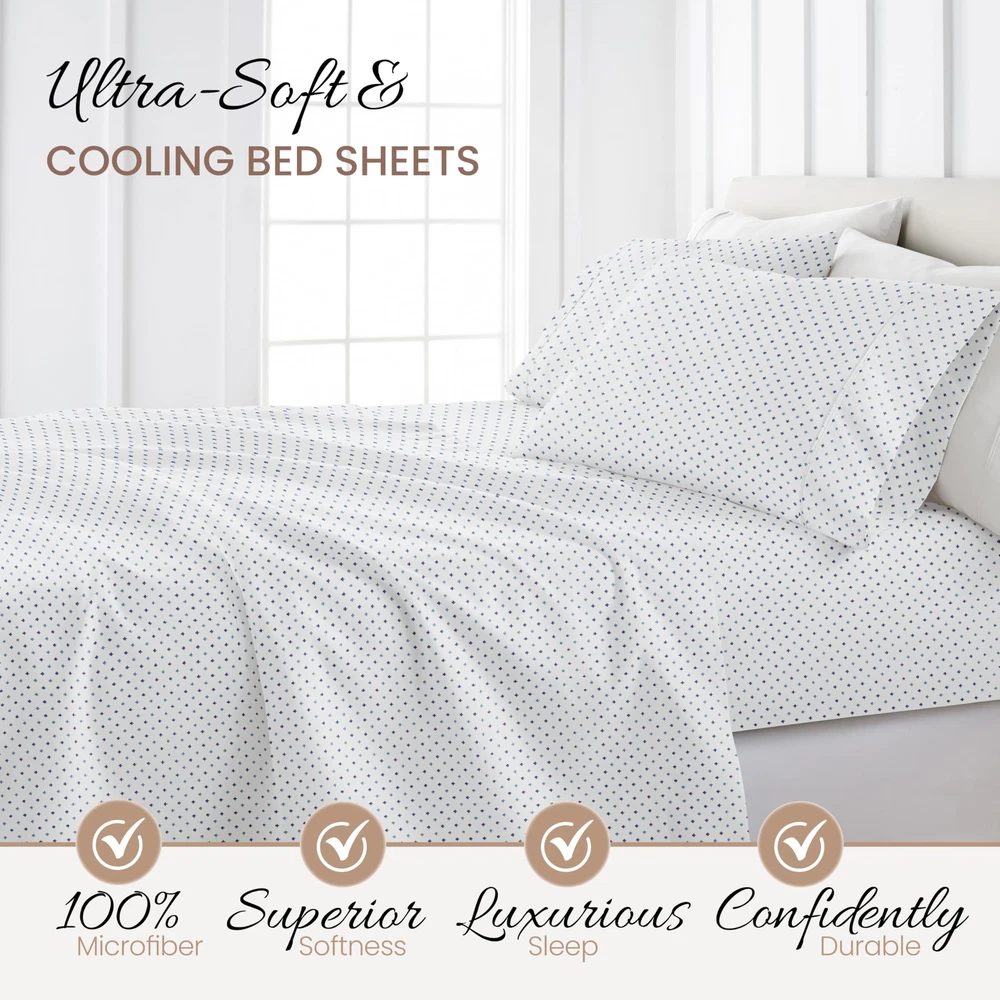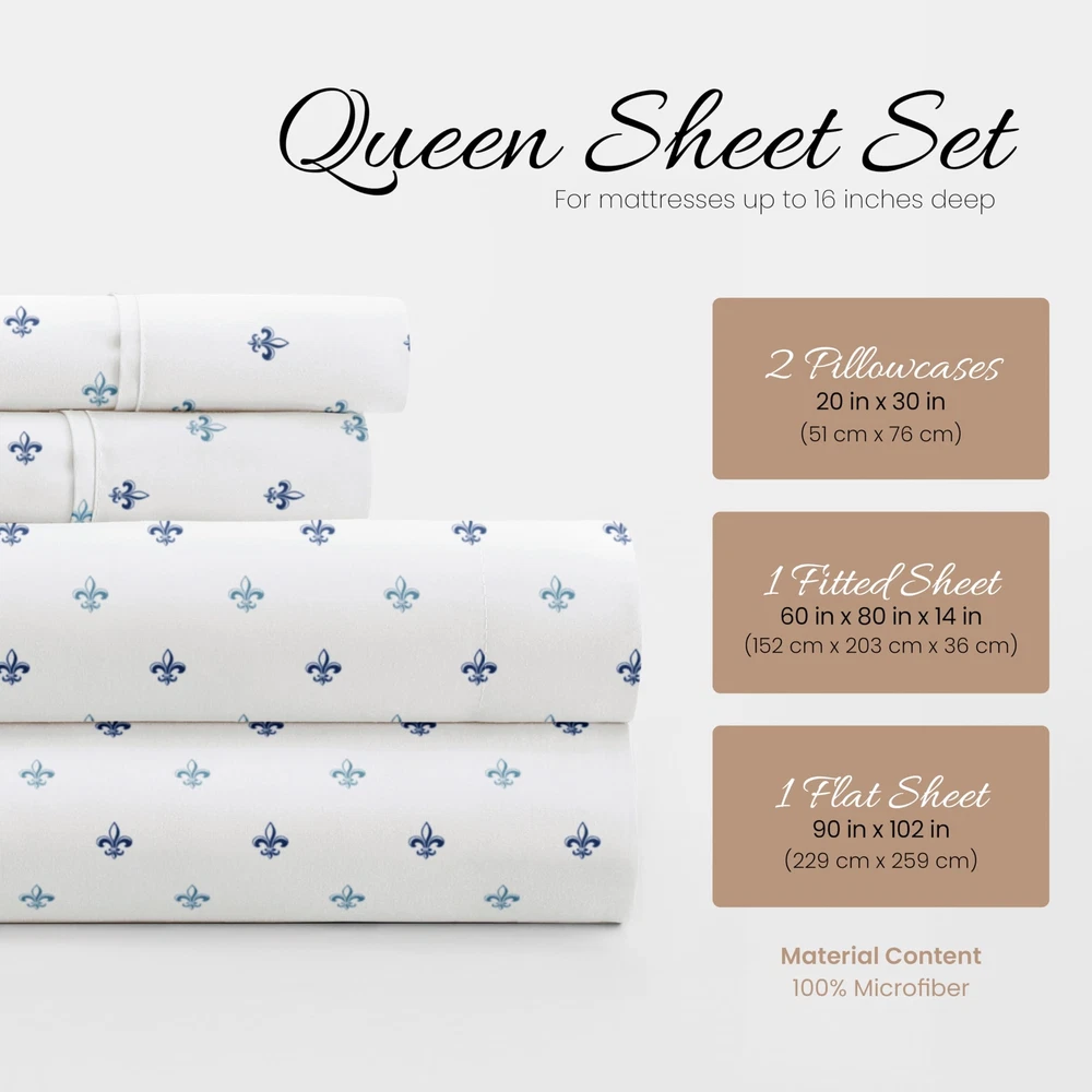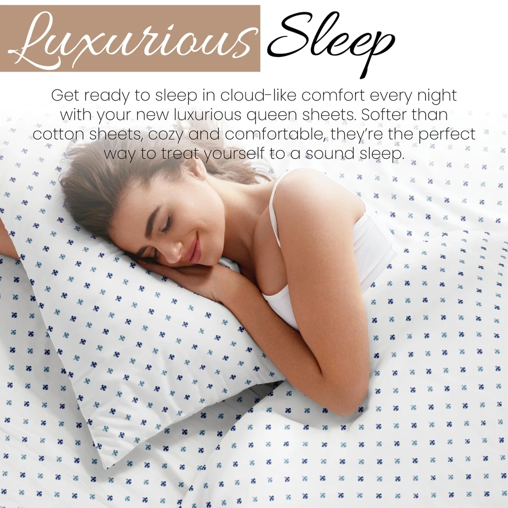 Give your room a refreshing new look and feel with this easy care, deep pocket, sheet set by . This set is made from 90 GSM double brushed microfiber, creating a soft finish that makes you want to stay in bed all day. The moisture wicking properties, help keep you dry - it also helps transfer body heat allowing you a comfortable night's sleep. You also don't have to worry about high maitenence upkeep with this resistant, machine washable set - just throw it in the washing machine with cold water, and tumble dry on low! (Be sure not to use bleach or fabric softener - and all care instructions listed on the product's tag). Featuring a variety of colors and patterns, find the that will help elevate the design of your bedroom. LUXURIOUS SLEEP: Get ready to sleep in cloud-like comfort every night with your new luxurious queen sheets. Softer than cotton sheets, cozy and comfortable, they're the perfect way to treat yourself to a sound sleep. WHAT MAKES OUR SHEETS DIFFERENT: Most bed sheet fabrics are only brushed once to soften them up, but to make sure you get the best night’s sleep, we brush our fabric TWICE. Tuck yourself into these cloud-like sheets and soundly drift off to sleep every night. EASY SHEET CHANGES: Changing sheets on deep beds is frustrating, but not with our 16” deep pocket sheets. Our snug-fit design allows for you to easily put your fitted sheets on without the hassle of wrestling down every corner. This set includes a fitted and flat sheet, and pillowcases. CONFIDENTLY DURABLE: Pets, , and family life can take a hard toll on sheets and other bedding, but our microfiber queen size sheets are made to last. Expert stitching and seams ensure that your durable queen sheet set stands up to wear and tear for years to come. BEAUTIFUL BED SHEETS: Our unique Lily Pattern print is sure to add a touch of elegance and brighten up your bedroom. Check all 14 of our popular color options in all 5 size options to find the perfect match for every bedroom in your home.