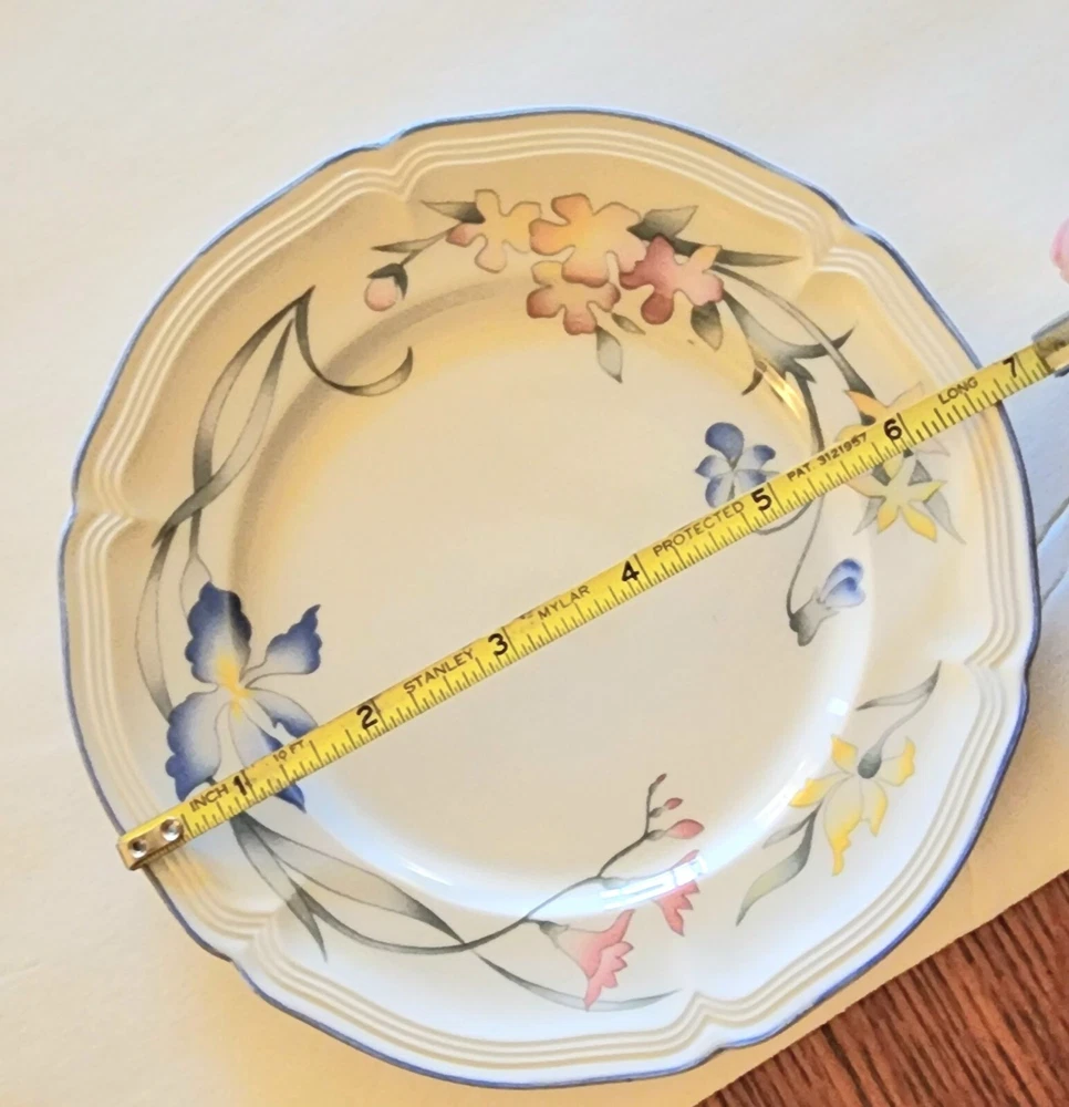 Very pretty set of 4 plates. No chips or cracks but please expect minor signs of use and storage such as light scratches or scuffs. I've added a couple different shipping options, please choose what works best for you.