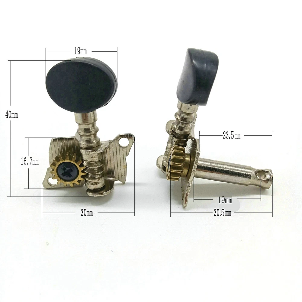 4 Pieces Metal Opened Ukulele Uke Tuning Pegs Tuners Round Black B5N98228 Set of 4 ukulele open adjusting round pegs cap machine heads New and high quality, easy to install Ukulele 4 strings hawaii guitar spare parts Adjust smoothly, without slop or slack size:30x40x30.5MM Material:Metal + plastic colour:Black + Silver Package Contents: 4 x Tuner (2R 2L)