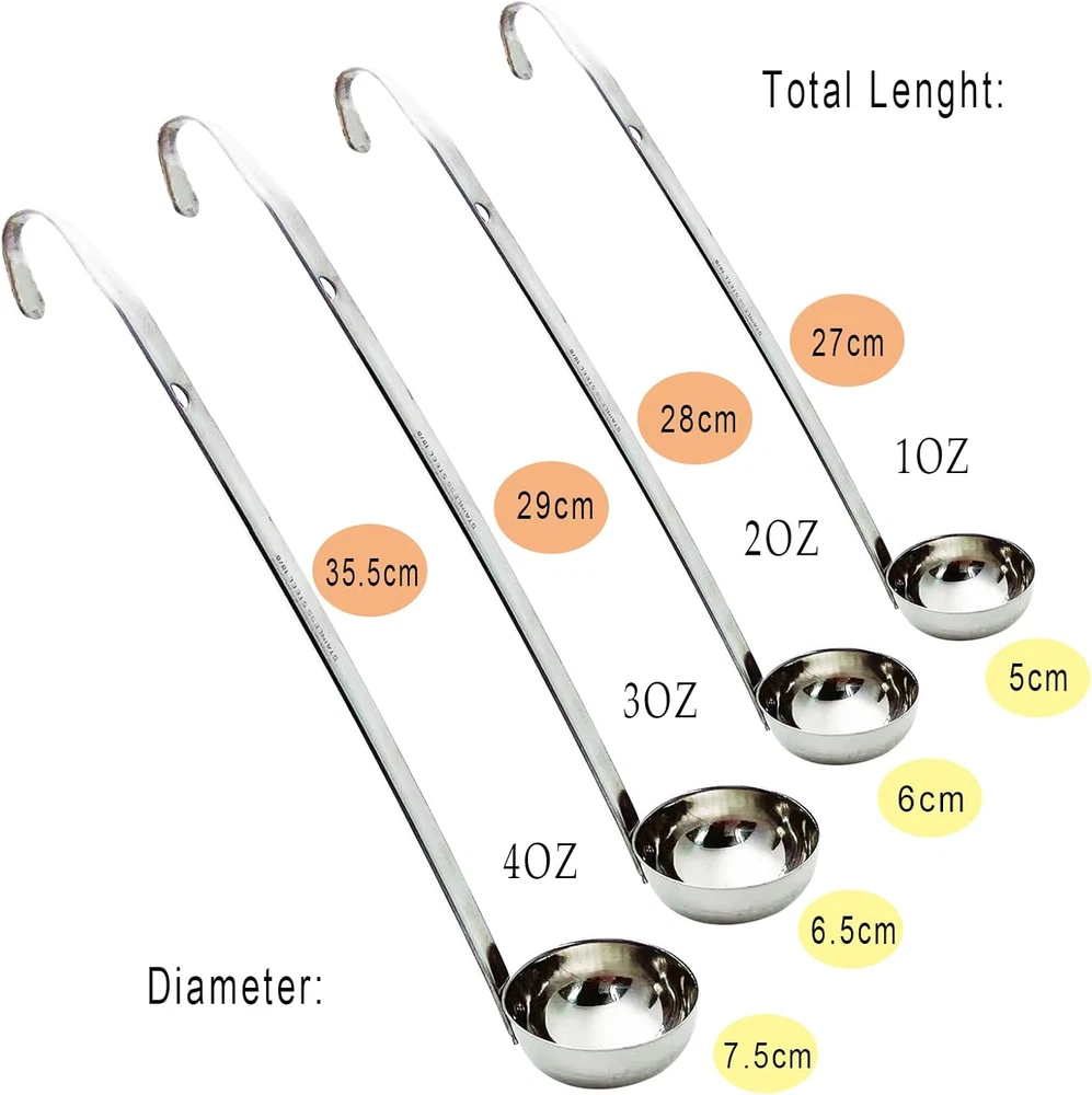 Store New Arrivals Add to Favorite View Feedback Contact 4 Pieces Stainless Steel Soup Ladle Metal Handle Ladle with Pouring Rim,1Oz/2Oz/3Oz/4Oz Set Ladles for Cooking Soup Sauce Description Style Classic Color Silver Material Stainless Steel Is Dishwasher Safe No Item Weight 1 Ounces Material Type Free Plastic Handle Free Package Dimensions 13.46 x 3.15 x 2.91 inches Number of Pieces 4 Wide range of usage: this stainless steel soup ladle can be applied in sauce, soup, gravy, and stew, suitable for restaurant, family kitchen, dining room and more occasions Convenient to use: the hand ladle has capacity of 1 oz, 2 oz, 3oz, 4 oz, and the spoon handle clearly indicates the spoon's capacity, smooth surface without burrs, long handle can prevent your hands from scalding Practical design: with pouring rim design, which is convenient for you to hang and place in the pot or bowl, the spoon will not fall off, the handle has holes, also can be hung and stored easily Safe material: made of stainless steel which is durable and sturdy material, not easy to break down, non-toxic and can serve you for a long time Amount of package: come with 4 pieces 1 oz, 2 oz, 3oz, 4 oz handle ladles in total, the quantity can meet your dinner and party needs Product Description Clear specification labeling Hang hole design Solid welding process Specification: Size: The hand ladle has capacity of 1 oz, 2 oz, 3 oz, 4 oz. Material: Stainless steel soup ladle. Portable hanging hole design. Long handle can prevent your hands from scalding. Can be applied in sauce, soup, gravy, and stew, suitable for restaurant, family kitchen, dining room and more occasions. ABOUT US We offer the best prices around on high quality products. Our E-store includes media such as books, movies, music and games while offering electronics, toys, sporting apparel, clothing, tools, general home, garden items and more. SHIPPING We are always working hard to ensure your package arrives as soon as possible. Please understand that some factors like weather, high postal traffic, and the performance of shipping companies are outside of our control. We offer free shipping to the lower 48 states and ship within 2 business days of payment, usually sooner. We do not accept P.O. Boxes. Please provide a physical address. For shipping outside of the continental USA, we only use eBay's Global Shipping Program.The item is shipped to KY and then sent to the rest of the world. International customers are responsible for all duties and taxes. Continue to check out in order to calculate costs for shipping the item to your country. Messages regarding eBay's Global Shipping Program MUST be directed at eBay EXCLUSIVELY. RETURNS We offer a 30-Day Return Policy on items which you are not completely satisfied with. You have the option for a full-refund or an exchange of the item. No returns are available on items shipped outside of the USA. PAYMENT We accept PayPal. CONTACT US This page content is yet to come Please ad us to your favorite seller and visit again later Thank You CUSTOMER SATISFACTION We try our very best to make sure every customer is completely satisfied. If there's a problem, message us! We're happy to help. WE ACCEPT Copyright © 2021 AutoDS. | All Rights Reserved