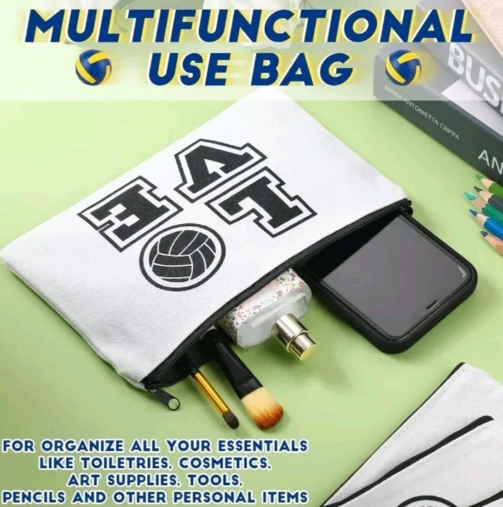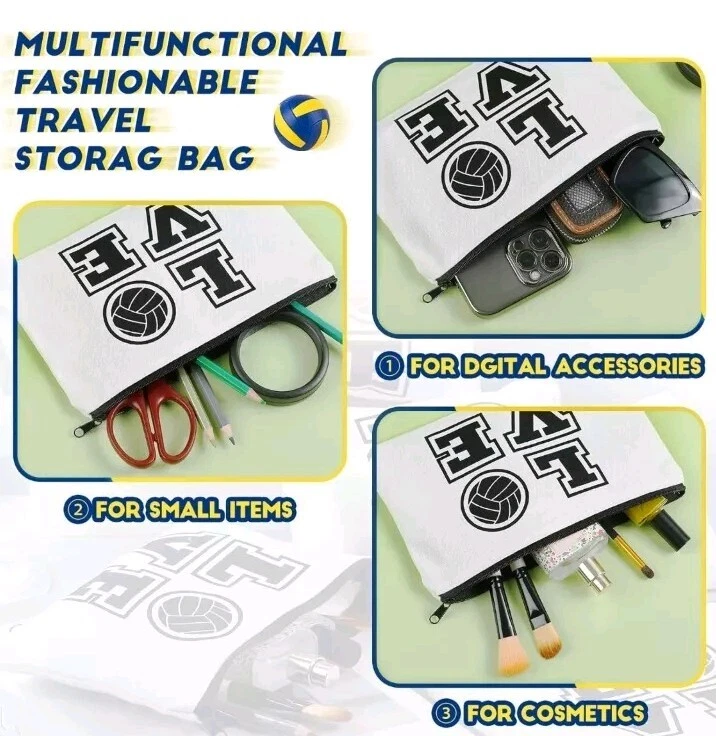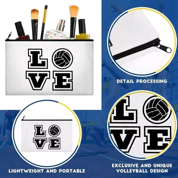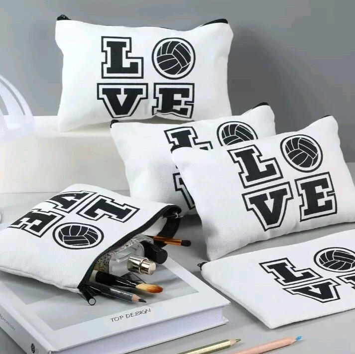 4 Pieces Volleyball Pouch Small Makeup Case Cosmetic Travel Toiletry Bag White