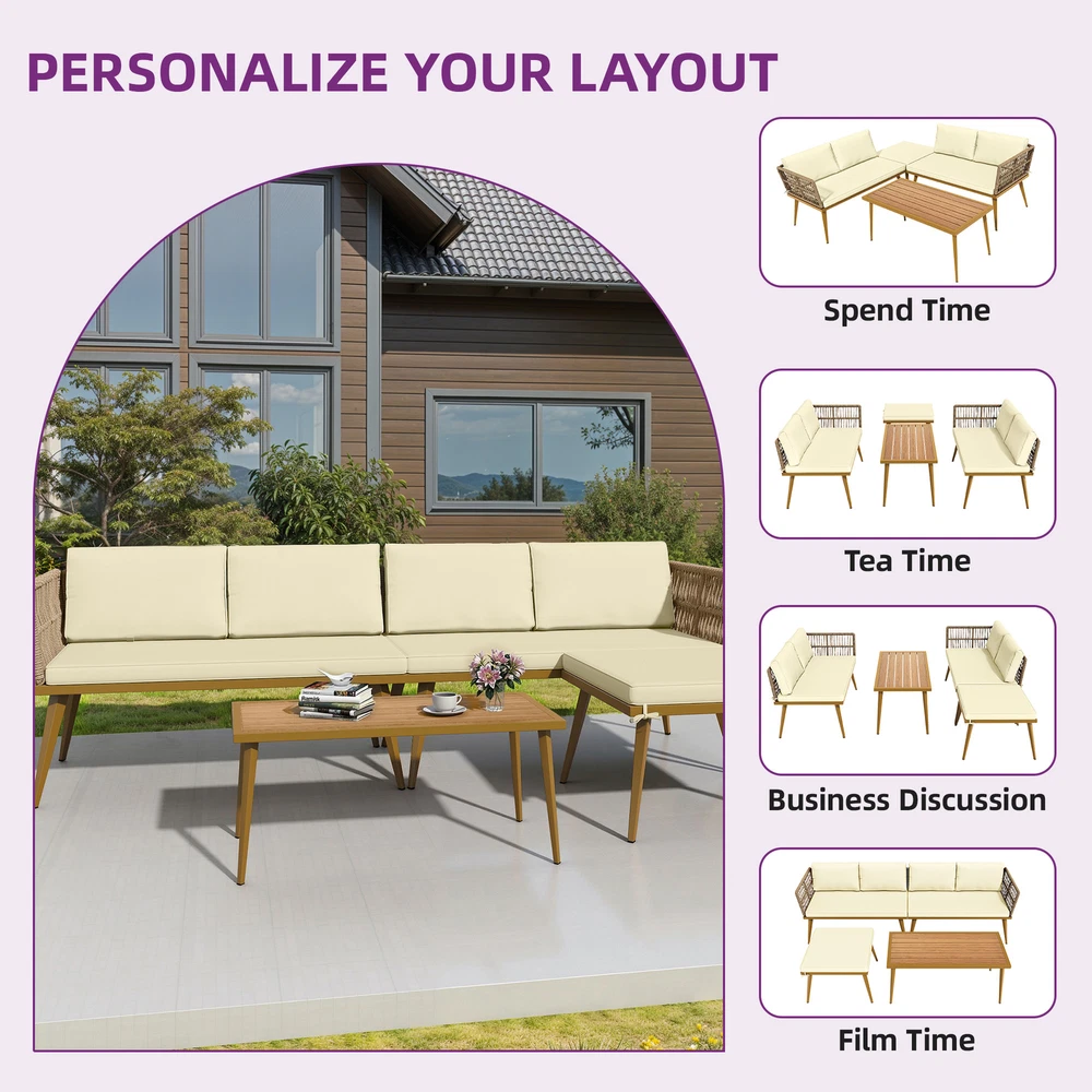 Product Description Specifications: Color : Beige Materials :Rattan & Steel Frame Overall Dimensions :83.45“L×27.95”W×30.11”H (L-shaped) Piece of Package :One package included all pieces Shape : L-Shaped Room Type: Living Room, Outdoor Package Included: 2 x Patio Sofa 2 x Seat cushions, 5 x Sponge-padded back cushions 1x Coffee Table 1 x Installation Manual Product Details Shipping 1.The shipping rates listed are only for residential or commercial destinations in the continental 48 United States. All international sales will go through eBay Global Shipping Program.please ask us if there are any questions. 2.We only ship the item to the address that is sent to us at the time of checkout. Please verify the correct shipping address in your PayPal account before making your payment. If we ship your item to an old or invalid address and you are not able to locate the item, we are not responsible for shipping a replacement. 3.Currently, we do not ship to Hawaii, Alaska, Puerto Rico,APO/FPO/PO Boxes. 4.We use USPS, UPS & FedEx as shipping method. 5.Payments cleared before 12 PM PST, will be shipped on the same day. Payment 1.We accept PayPal and all forms of credit card. 2.We will only ship to the confirmed Paypal shipping address given with the payment. 3.We do not offer local pick up service. Return 1.30 days Money Back Guarantee. 2.If any package that needs to be returned, please contact our customer service first to receive a RMA form. 3.All return items MUST be in brand new condition. About Us 1.Specialized in aftermarket auto parts since 2012, we source and work directly with professional manufacturers to provide the highest quality parts at the most economical prices. 2.We also has over 5 years of shipping experience with FedEx and USPS . Our Packing Quality is Guaranteed , Item Ship-ping is timely!