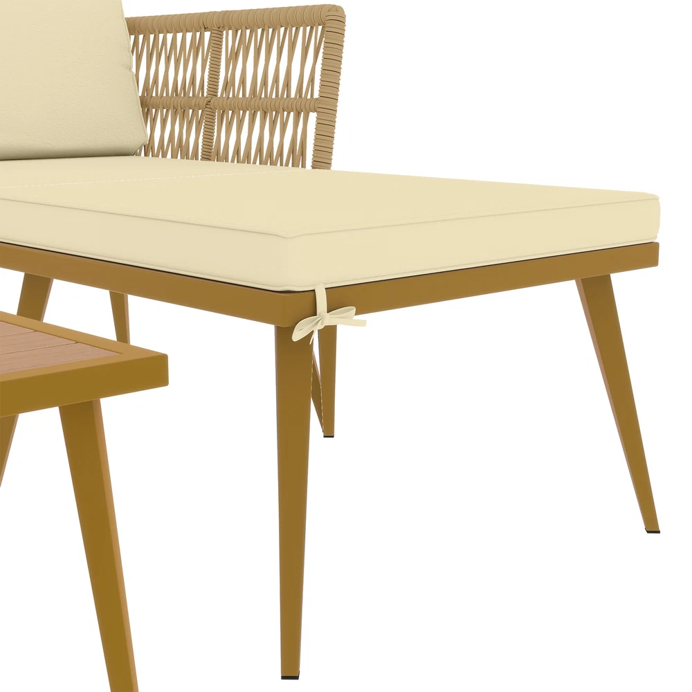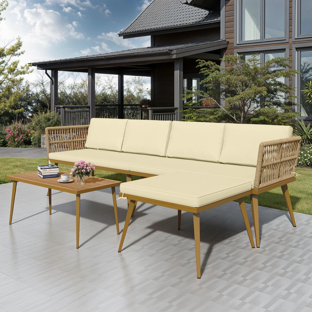 4 Pieces Wicker Rattan Loveseat Sectional Conversation L-Shaped Outdoor Sofa