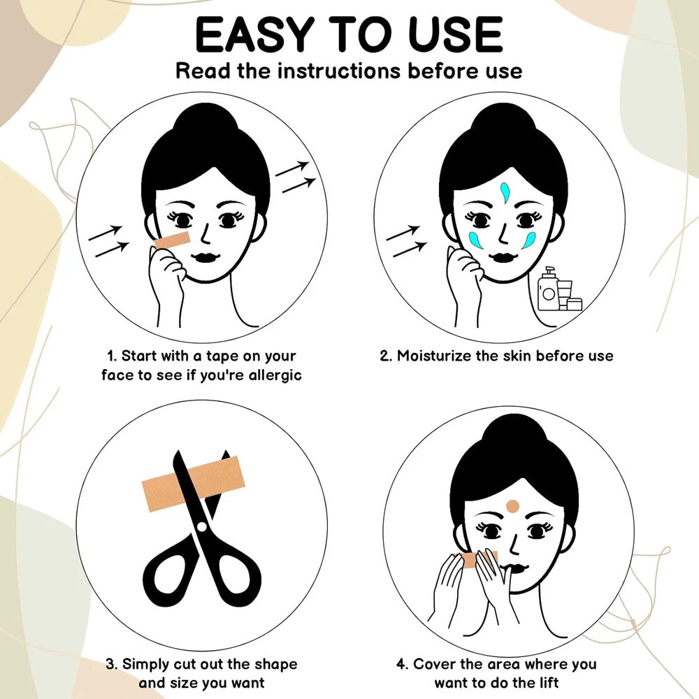 Store New Arrivals Add to Favorite View Feedback Contact 4 Rolls Face Lift Tape,Face Tape for Wrinkles Overnight Facial Patches Face Lifting Tape Face Patches for Forehead Face and Neck,2.5Cm*5M Description Item model number -2.5cm*5m Unit Count 4 Count Item Form Patch Country of Origin China Skin Type All Special Feature Elasticity Package Dimensions 5.55 x 5.2 x 0.98 inches; 6.38 ounces FIT SIZE: Each roll of this face lift tape measures 2.5cm*5m/0.98 *196.8 in, 4 rolls in total, enough for you to use it for quite a long time. FIGHT FACIAL LIFTS AND WRINKLES: face lift tape is a product designed to fight facial lifts and wrinkles, it can effectively solve various facial wrinkles, such as forehead lines, frown lines, lower eyelid lines, eye lines and so on. DESIGNED FOR SENSITIVE SKIN: We understand that many people have sensitive skin on the face and neck, so this face lift tape is formulated to be gentle. Designed for sensitive skin, it will not cause any discomfort or irritation, so you can use it with confidence. EASY TO USE: face lift tape is very easy to use, just take a few minutes each night and follow the instructions to place the patch in the designated spot. After a few hours, you'll be amazed at the results. CERTIFICATIONS AND QUALIFICATIONS: It is worth mentioning that our face lift tape has passed several stringent certifications and tests to ensure its quality and safety. We are committed to providing our customers with the possible experience so that you can feel assured and satisfied when using our products. Product Description If you are looking to improve the appearance of facial wrinkles, our face lift tape is definitely the ideal choice for you. It is easy to use, effective, and designed for sensitive skin, making it easy for you to get younger, firmer skin. Quantity: 4 rolls Size: 2.5cm*5m Color: Skin tone How to do a simple skin allergy test? 1. Before applying the face lift tape, first make sure your skin is clean and dry without any moisturizers, oils or any products. 2. Then cut a small piece of tape and stick it on the skin of your arm and tear it off after 6 hours. 3. If you have any adverse reaction (such as redness, burning sensation or discomfort) after the test, please stop using the tape immediately. ABOUT US We offer the best prices around on high quality products. Our E-store includes media such as books, movies, music and games while offering electronics, toys, sporting apparel, clothing, tools, general home, garden items and more. SHIPPING We are always working hard to ensure your package arrives as soon as possible. Please understand that some factors like weather, high postal traffic, and the performance of shipping companies are outside of our control. We offer free shipping to the lower 48 states and ship within 2 business days of payment, usually sooner. We do not accept P.O. Boxes. Please provide a physical address. RETURNS We offer a 30-Day Return Policy on items which you are not completely satisfied with. You have the option for a full-refund or an exchange of the item. No returns are available on items shipped outside of the USA. PAYMENT We accept PayPal. CONTACT US This page content is yet to come Please ad us to your favorite seller and visit again later Thank You CUSTOMER SATISFACTION We try our very best to make sure every customer is completely satisfied. If there's a problem, message us! We're happy to help.