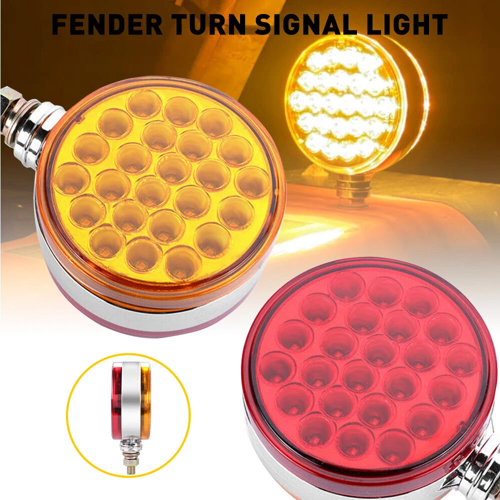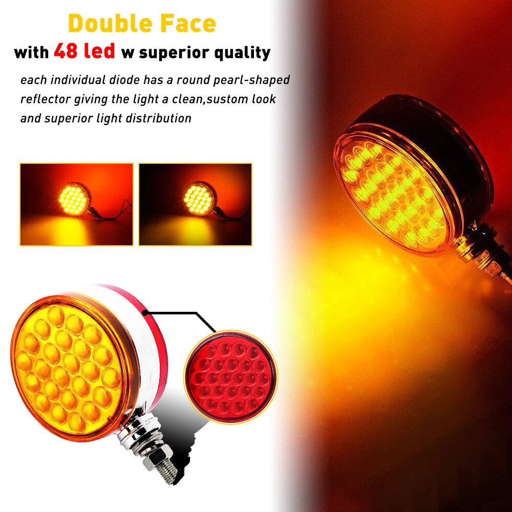 4" Round Double Face 48 LED Pedestal Fender Brake Turn Signal Light Amber/Red
