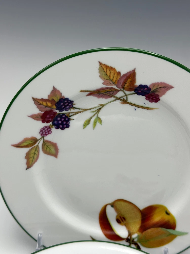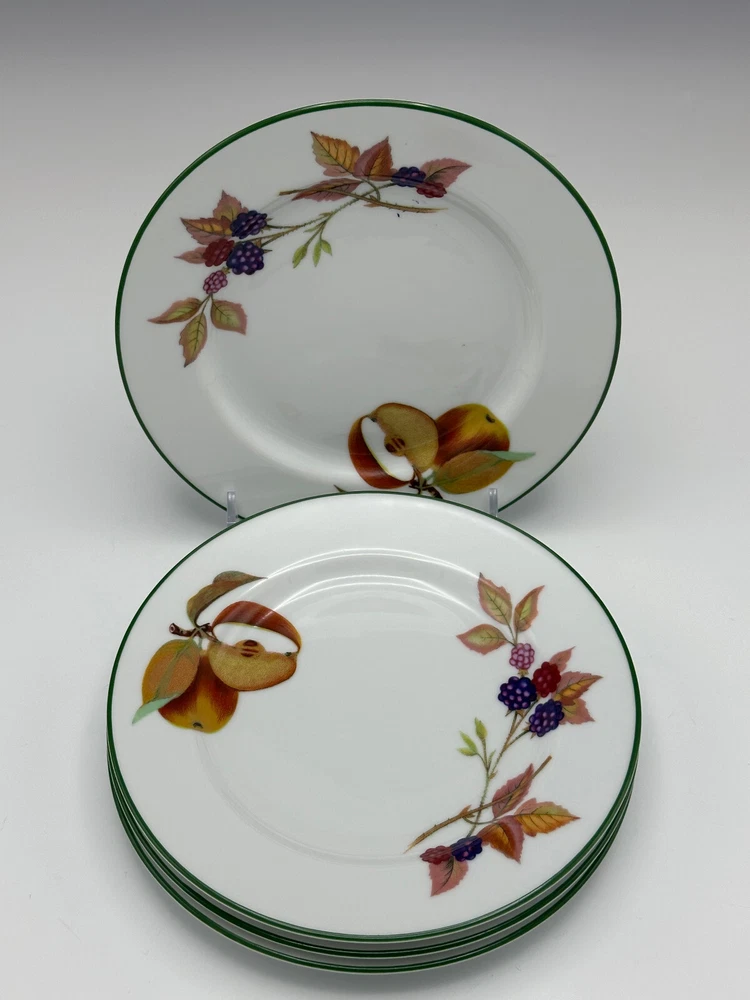 4 Royal Worcester Bread Plates Evesham Vale Fruit Green Trim England 6 5/8"