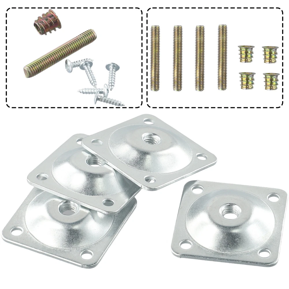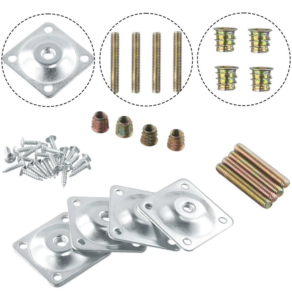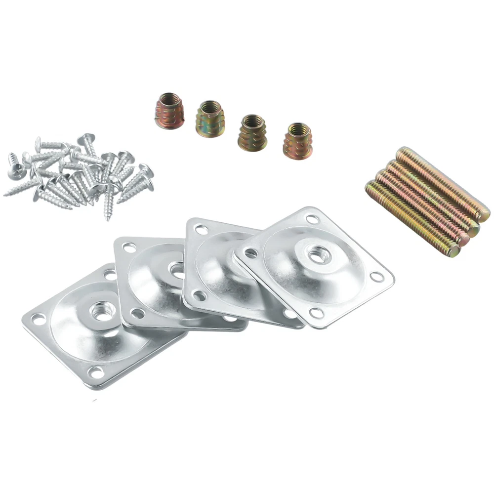 4 Set Leg Fixing Mounting Plate Level +Metal Dowel Screws For Wooden Chair Table
