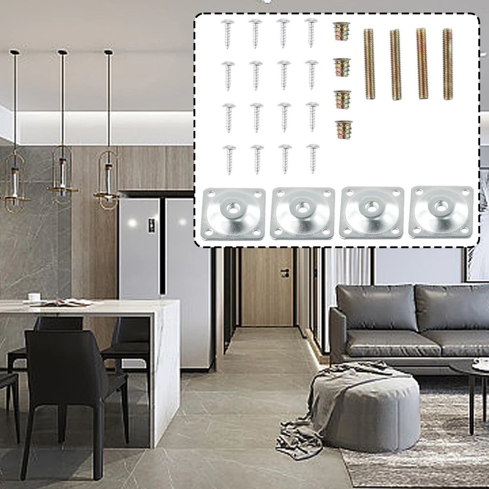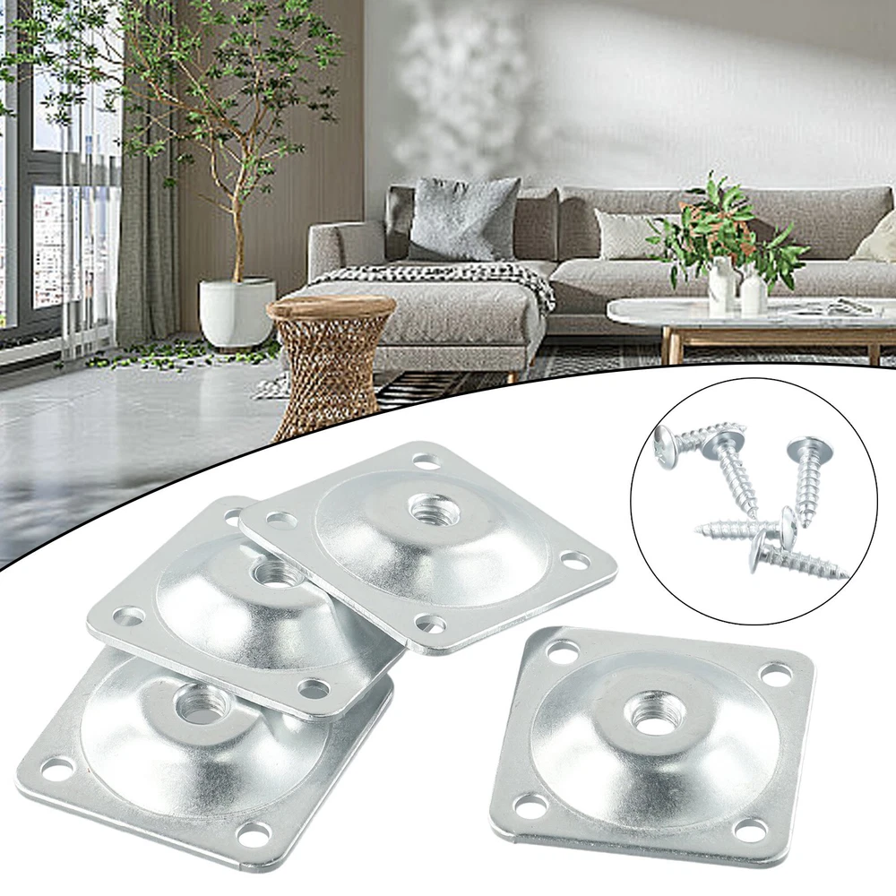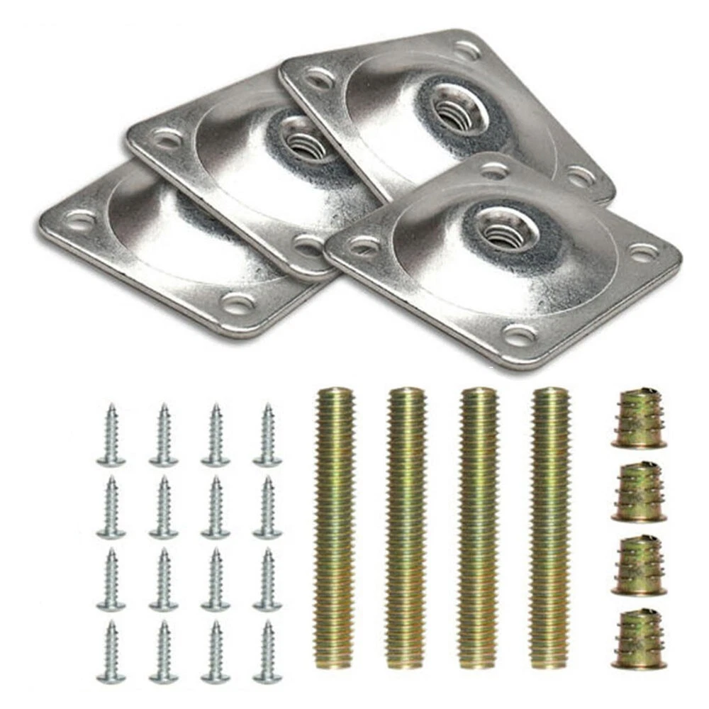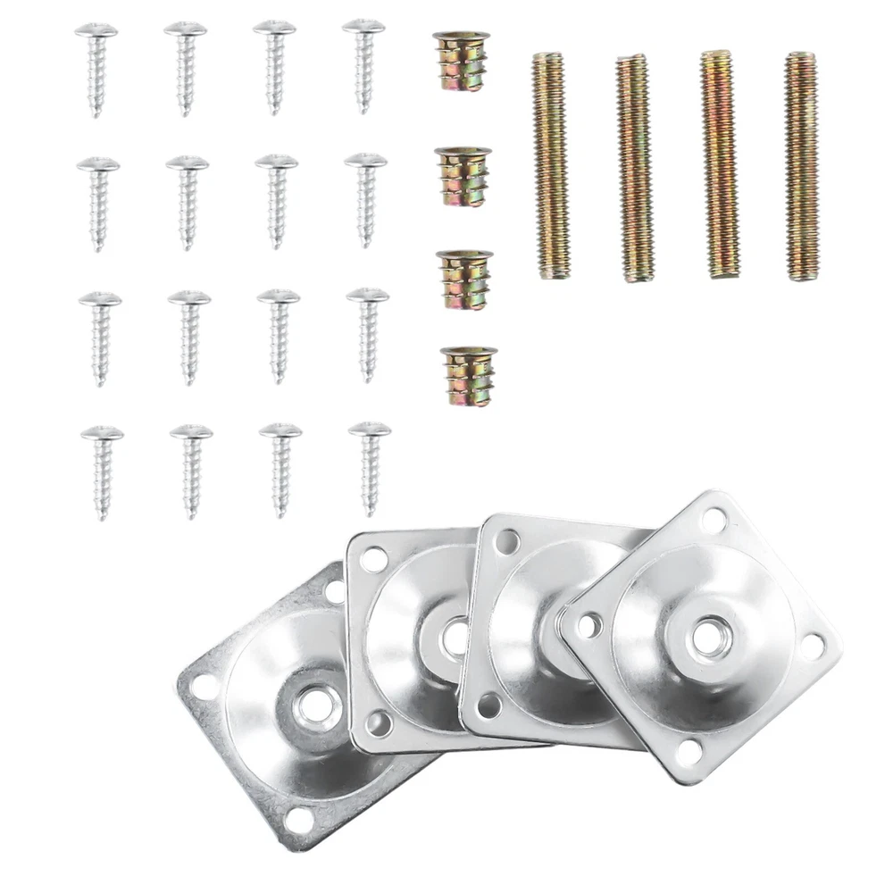 4 Set Leg Fixing Mounting Plate Level +Metal Dowel Screws For Wooden Chair Table