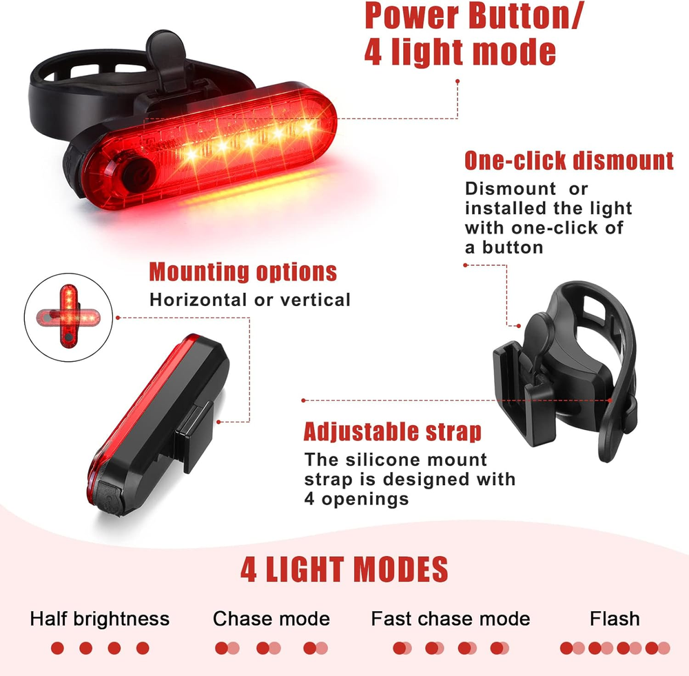1. These LED bike lights are a game-changer for night rides! The set includes four front and rear lights, all USB-rechargeable—no more buying batteries. They’re super bright, lightweight, and easy to install with quick-release buttons. Perfect for sharing with friends or keeping spares. The battery life is solid, and the compact size doesn’t add bulk. Great value for the price—highly recommend for safer cycling!