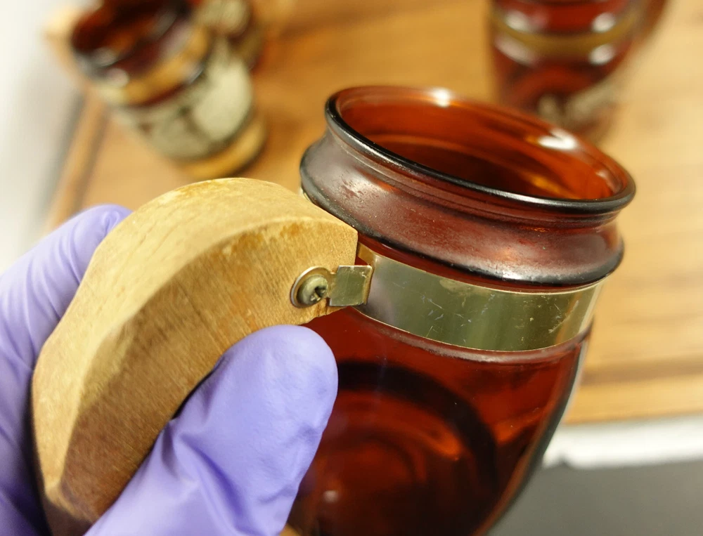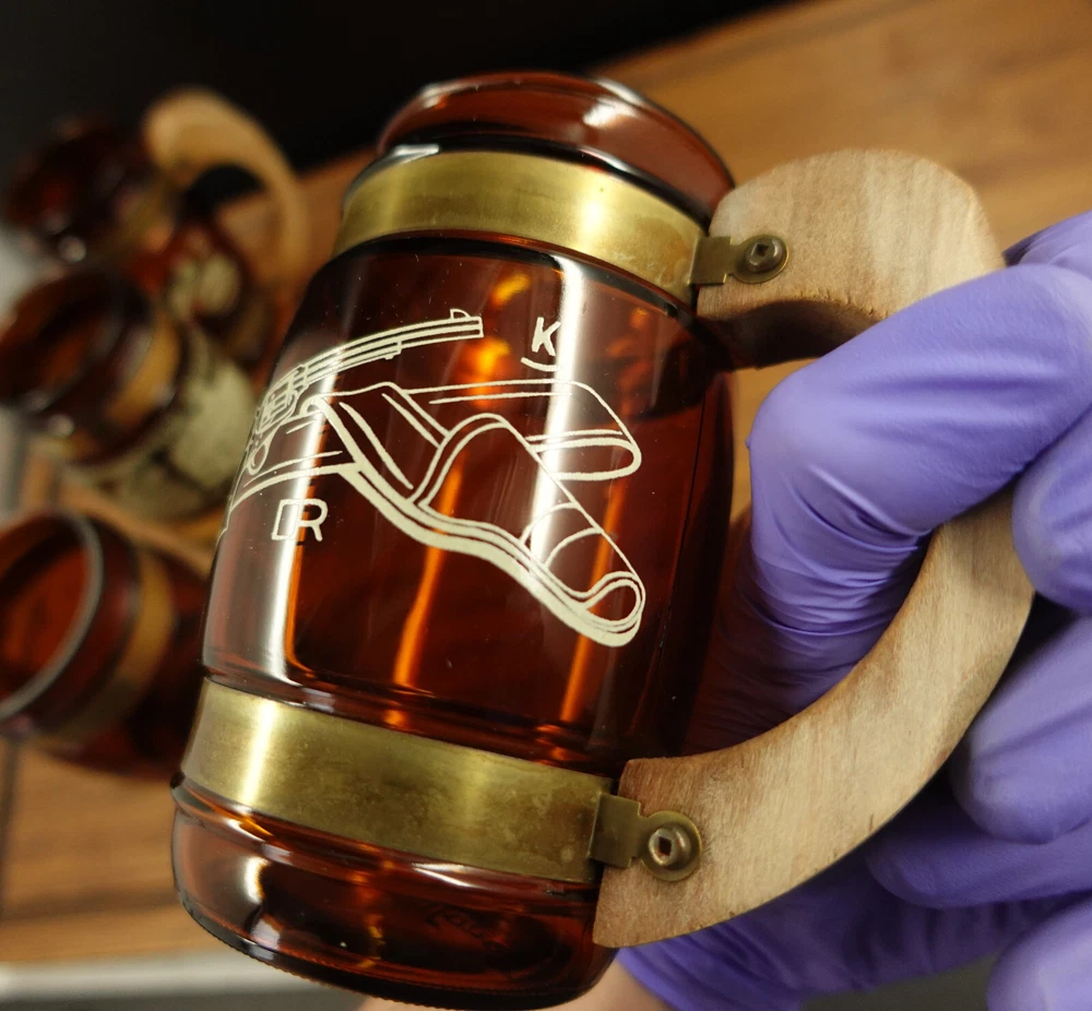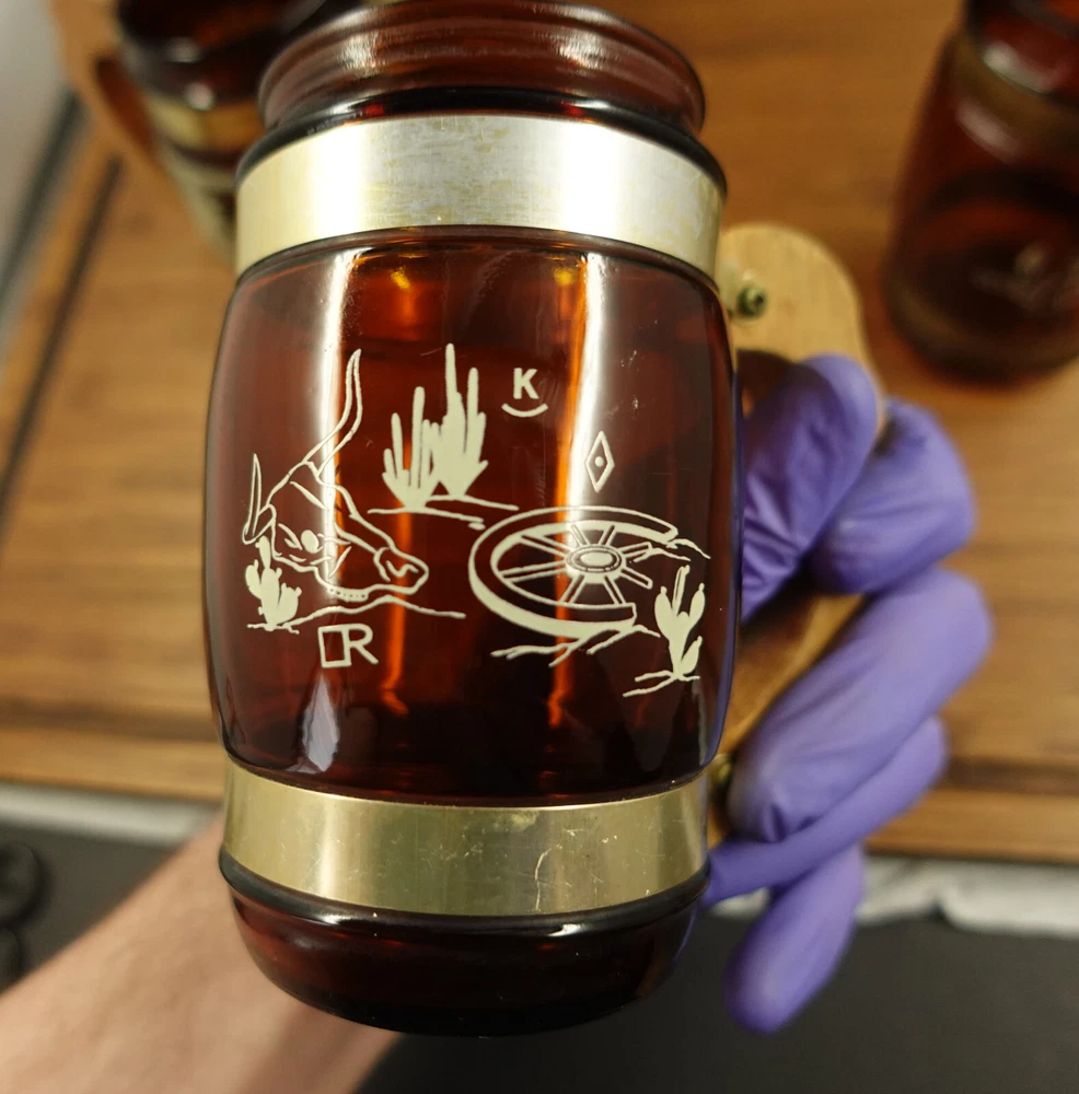 See Pictures for Condition Before buying: Has some scratches/wear, slight ware/fading to the design, ware to the wooden handles, has some residue/water/washer stains that might be cleaned with further washing If you have any questions, Feel Free to Message me!