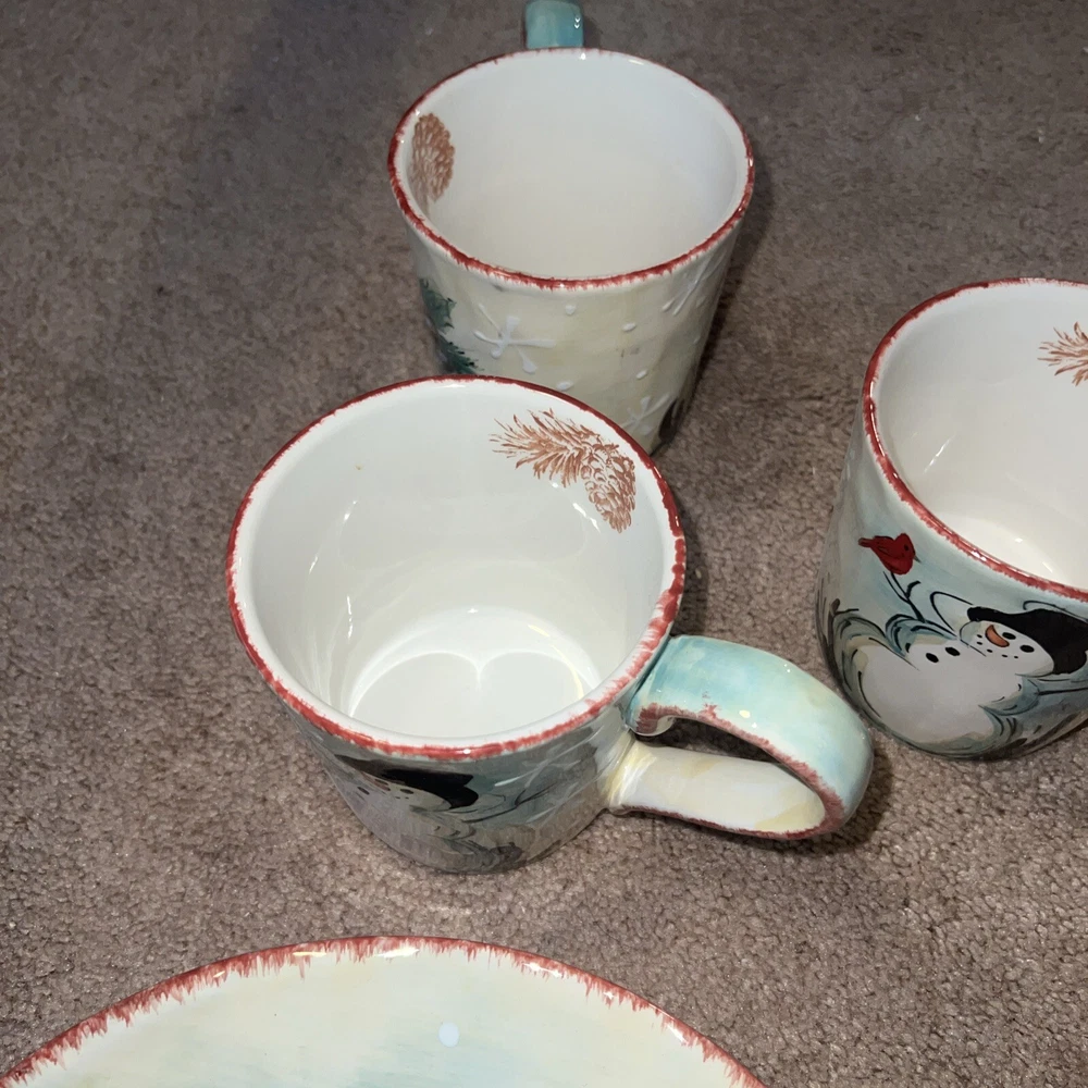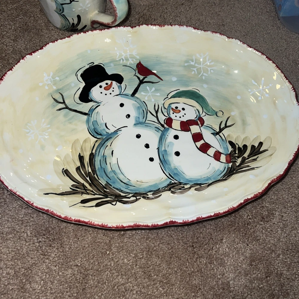 4 - Snowman Mug Maxcera "Snowfellas" Mug or Cup Platter Plate Bowl Lot