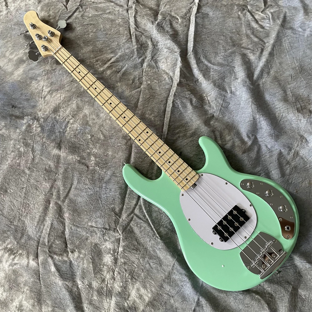 4 String Electric Bass Guitar Green Body Maple Fretboard Chrome Parts Fast Ship