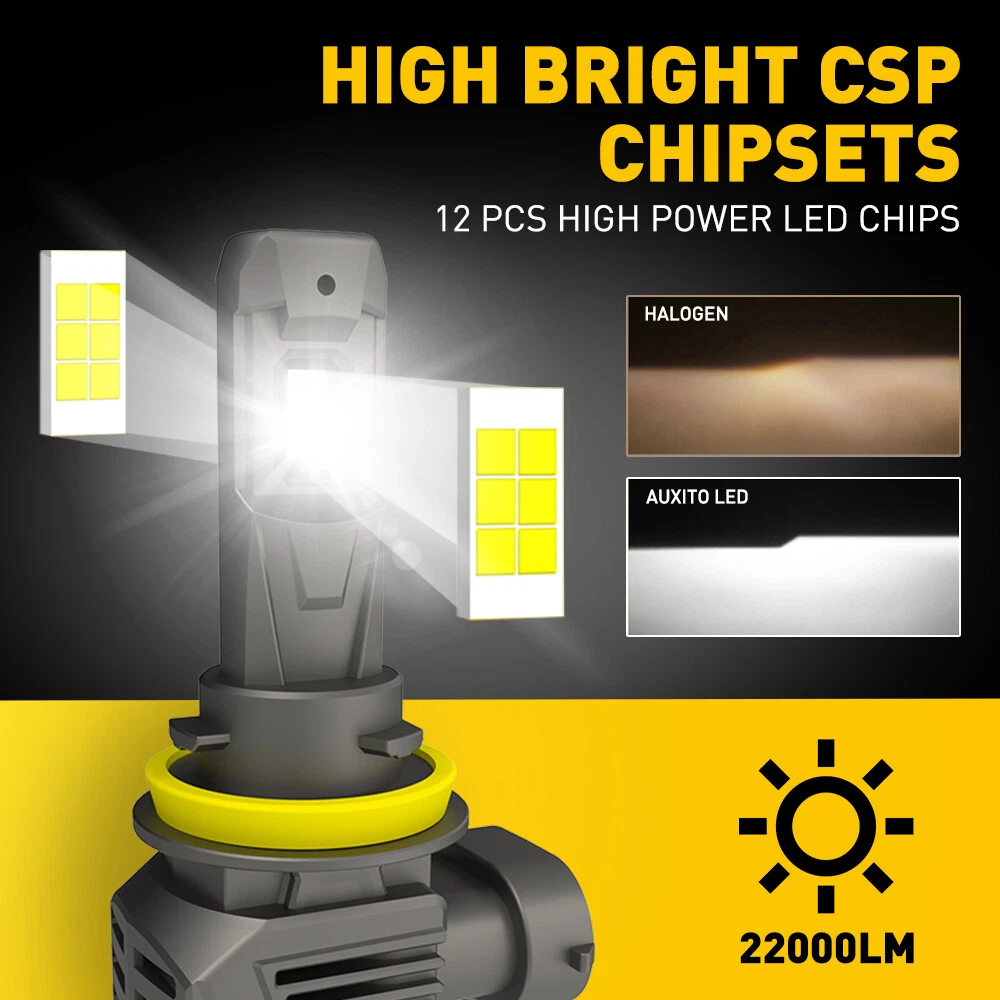 Bulb Fitment Code: H11 9005 Interchange Part Number: Brighter Than 35W Xenon HID & 55W Halogen Bulbs, 2017 Newest 6K csp LED Conversion Driving Bulbs, 4Pcs(2 Pair) LED Lamp Car Truck Bike High&Low Beam, New Two Pairs High Power csp LED Headlamp Bulbs, HB3 9145 9140 H10 9005XS 9011 & H8 Beam Angle: 360 Degrees Wattage: 240W/set2 Placement on Vehicle: Front, Rear, Left, Right Other Part Number: 6500K (Xenon HID White) 6K Head Light Lamp Bulbs Bulb Life Hours: Up to 30,000 Hours UPC: Does not apply Universal Fitment: Yes Number of Bulbs: 4 Sealed Housing: Dustproof and Waterproof Manufacturer Warranty: 5 Years Color Temperature: 6500K LED Type: New Customized SMD CSP Manufacturer Part Number: EXA-05H11-4PCS-M5S-SERIES External Testing Certification: CE / Rohs / IP67 gtin13: Does not apply Heat Control: A380 Aluminum BLACK MAT Shell With Built-In Fans Type: Light Bulb Suitable For: Headlight Lighting Technology: LED Light Color: Cold White Brand: AUXITO Warranty: 5 Year Voltage: 9-16V Lumens: 22000 lm/Per Kit,total about 44000LM