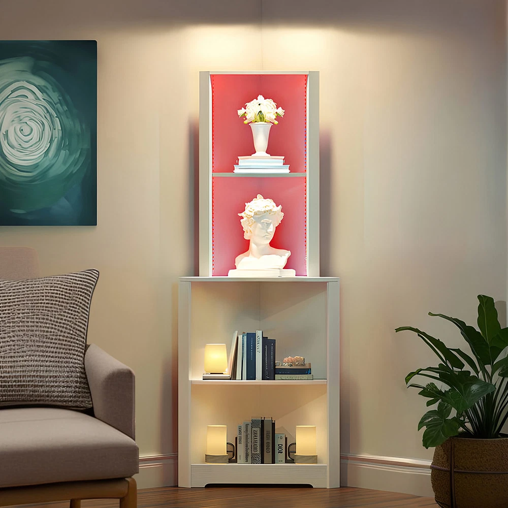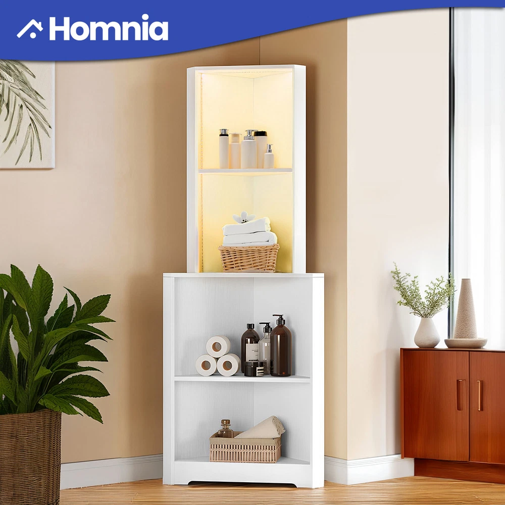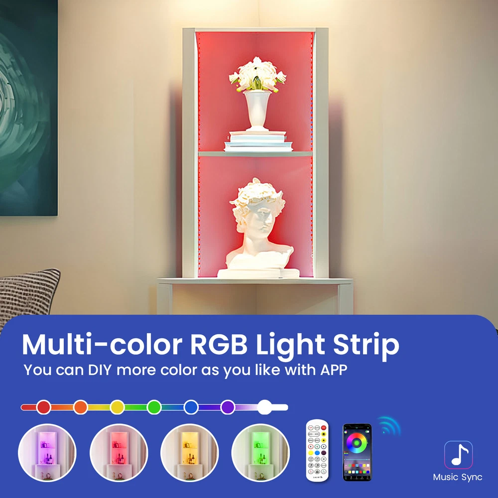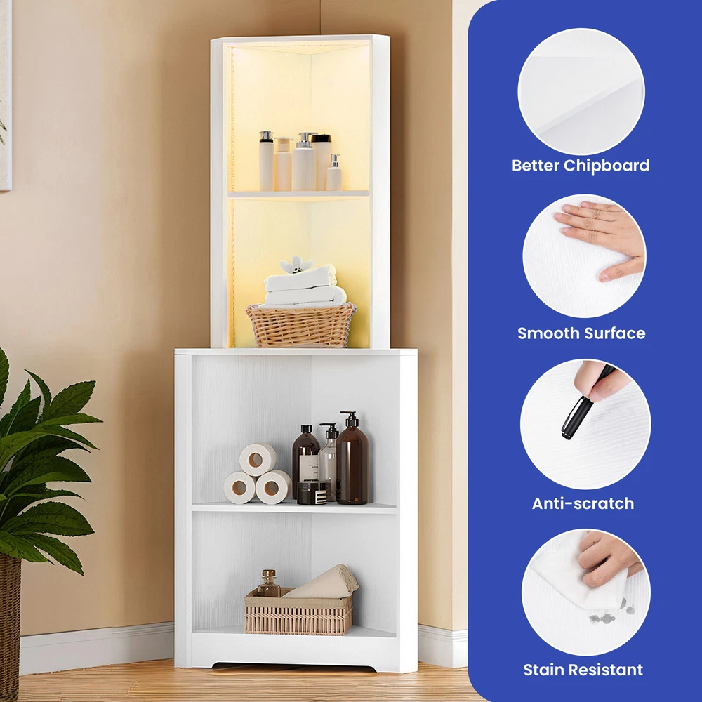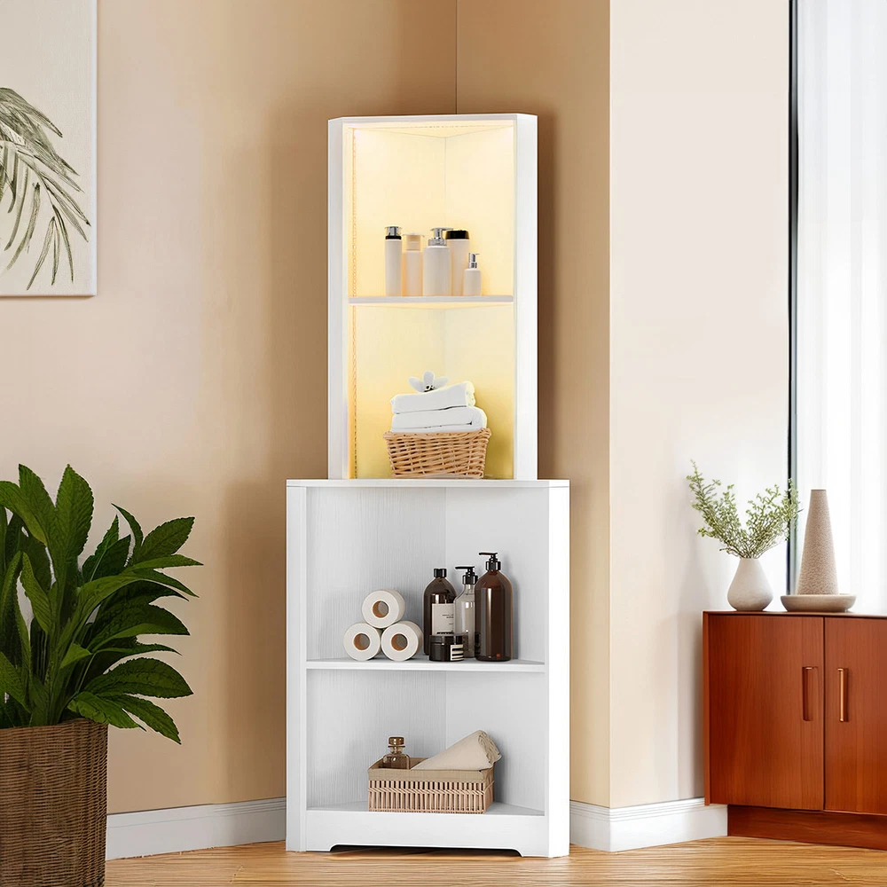 4 Tier Corner Bookshelf Bookcase LED Bathroom Cabinet Storage Shelf Organizer Product Description NOTE: Professional Installation would be Highly Recommended. Descriptions: 1. Material: MDF, Particle Board, Wooden 2. Color: White 3. Mounting Type: Freestanding 4. Special Design: 4-Open Shelf, Corner Shelf, RGB Light Strip, Anti Stain, Scratch-resistant 5. Suitable for: Home, Office, Bedroom, Living Room, Study Room Features: 1. Innovative Triangle Shape Design: This unique bookshelf features a modern triangle shape design, making it a stylish and functional addition to any corner of your home, office, or living room. The corner shelf design maximizes space utilization, transforming unused corners into practical storage areas while adding a contemporary touch to your interior decor. 2. High-Quality Construction: Made from high-quality chipboard, this bookshelf ensures durability and sturdiness. The smooth surface is meticulously crafted to resist scratches and stains, maintaining its pristine look over time. This robust construction guarantees a long-lasting and reliable piece of furniture that can withstand daily use. 3. Versatile 4-Open Shelf Layout: The 4-open shelf design offers ample storage space for books, decorative items, photo frames, and more. Each shelf is spacious enough to hold various items, making it a versatile storage solution. The open design not only provides easy access to your belongings but also allows for creative and attractive display options. 4. Enhanced with Multi-Color Light Strip: Adding a touch of sophistication and ambiance, this bookshelf comes equipped with a multi-color light strip. The adjustable lighting allows you to change the colors to match your mood or the room’s decor, creating a captivating and vibrant atmosphere. 5. Perfect for Various Settings: This corner bookshelf is suitable for a wide range of settings, including your home, office, or living room. Its compact yet spacious design makes it an ideal choice for any space, providing practical storage without taking up too much room. Dimensions: 1. Product Dimensions: 22.2"L x 15.7"W x 64.2"H 2. Item weight: 42 lbs Package Includes: 1. 1 x Bookshelf 2. 1 x Packet of Fittings 3. 1 x Instruction Manual Shipping 1. Normally the item will be dipatched within 1 business day if payment is cleared before 12pm PST. 2. Please verify the correct shipping address in your PayPal account before making the payment. We only dispatch the item to the address that is sent to us at the time of checkout. 3. We don't ship to Hawaii, Alaska, Puerto Rico, APO/FPO/PO Boxes. 4. We don't provide local pick-up service. 5. Normally we will use USPS, UPS, FedEx & LTL to dispatch items. Payment 1. We accept PayPal and credit card. 2. We will ship to the confirmed Paypal shipping address that is provided with the payment only. Return 1. 30 days Money Back Guarantee. 2. Please contact our customer service to receive a RMA form first if want to return the item. 3. All returned items MUST in new condition with the original package. Contact If has any problem, please contact us by sending an ebay message. Our customer service will resolve the problem as soon as possible. On Nov 21, 2024 at 04:25:51 PST, seller added the following information: