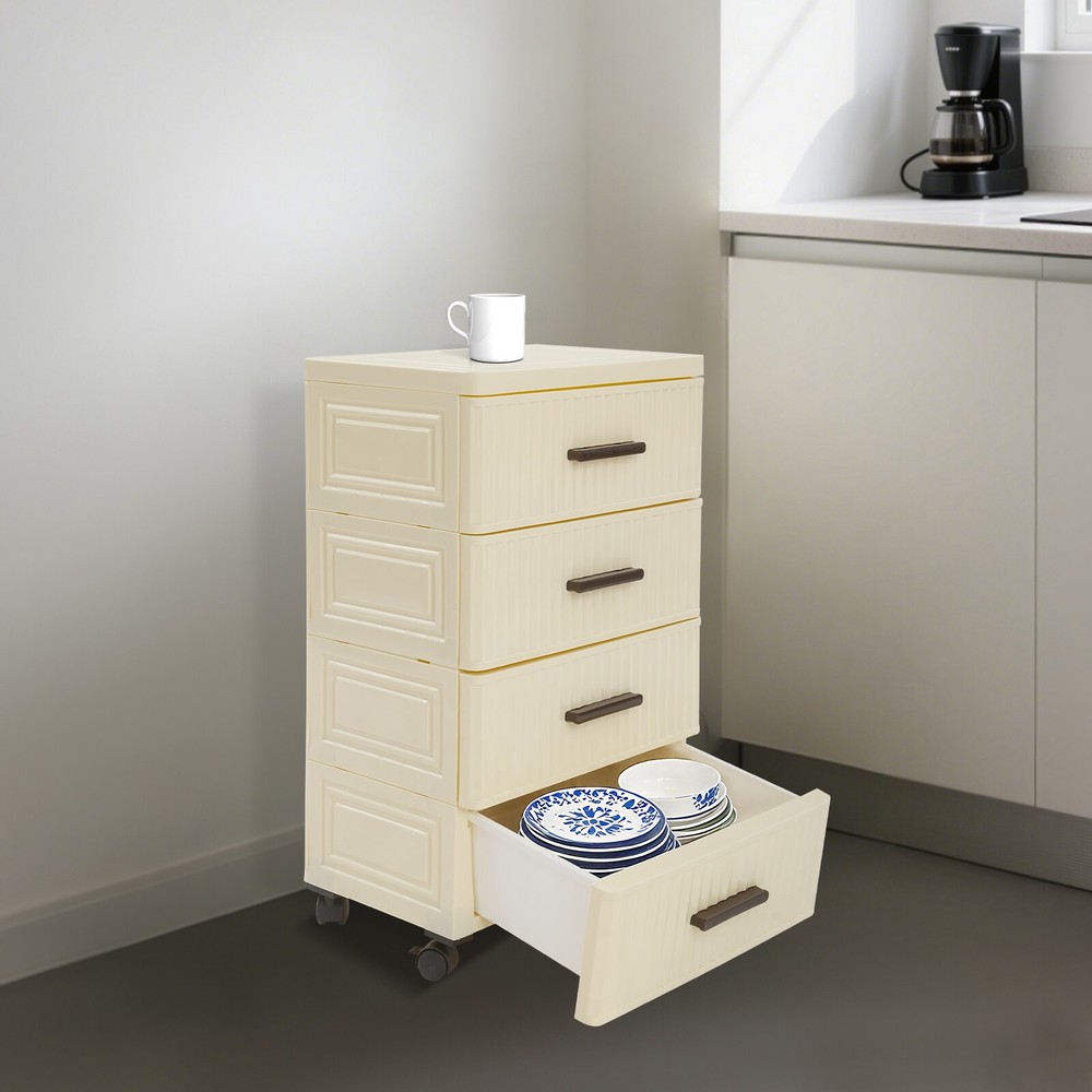 4 Tier Drawer Storage Organizer Drawers 4 Universal Wheels Storage Cabinet Description With a simple yet stylish design, this storage cabinet has 4 tiers of spacious storage to easily meet your storage needs. It is equipped with 4 smooth universal wheels, moving freely, whether in the kitchen, living room, or bedroom, it can be a good helper for you to organize your clutter and make life more organized. Key Features Last for Years: Made of high-grade PP, it is wear-resistant and corrosion-resistant , with high strength and excellent performance, ensuring effective weight-bearing and long service life. Effective Load-bearing: Thickened panel and stable rectangular structure ensure that it can effectively load about 8.82- 11.02 lbs per tier, allowing you to store your things with peace of mind. Large Capacity Design: The 4-drawer design is convenient for you to store a lot of snacks, clothes, accessories, books, and sketchbooks while protecting them from dust. You can also place coffee, ornaments, aromatherapy, etc., on the top shelf to keep daily necessities within reach, bringing great convenience to your life. Flexible Use: The bottom is installed with four 360-degree swivel smooth universal wheels, two of which are equipped with brakes, which are not only convenient to move but also ensure safety and stability when parked, meeting the needs of different places of use. Simple and Beautiful: The overall shape is simple and fashionable, with smooth lines and harmonious color matching, which can match well with various home styles. Easy to Clean: The surface is smooth and flat, making it easy to accumulate dust and dirt, so you just need to gently wipe it with a damp cloth (not included) to keep it clean and tidy. Ideal Gift: Thanks to its practicality and aesthetics, you can give it to your family and friends as a well-chosen Christmas gift, Thanksgiving gift, housewarming gift, birthday gift, celebration gift, and so on. Quick Assembly: It has a simple and clear structure with complete accessories, so you can quickly finish the assembly without professional tools. Customer Service: We aim to provide quality products and services. If you have any problems, please feel free to contact us. We will reply and solve the problem for you as soon as possible. Details Rounded Edges: The smooth and rounded edges can effectively prevent bumps and injuries, and also add to the overall beauty of the product. Anti-shedding Snaps: They ensure that the drawers are more stable when opening and closing, and are less likely to fall out even when tilted. Comfortable Handles: They are comfortable to hold and convenient for you to open and close the drawer quickly. Raised Bottom: This helps to keep moisture out of the bottom of the cabinet and makes it easier for you to sweep dust off the bottom floor. Application This product can be used to store snacks, drinks, ornaments, photo frames, towels, clothes, accessories, books, paintings, blocks, dolls, etc., ideal for living rooms, bedrooms, balconies, kitchens, bathrooms, and so on. It can be used as a storage cabinet, nightstand, or small dresser. Specification Mount Type: Floorstanding Assembly Required: Yes Style: Modern Shape: Rectangular Color: Creamy Yellow, Black Material: PP Number of Tiers: 4 Number of Drawers: 4 Number of Universal Wheels: 4 (2 With Brakes) Single Tier Load: Approx. 4-5kg/8.82-11.02 lbs Product Size: 35*26*57cm/13.78*10.24*22.44in Package Size: 35*30*27cm/13.78*11.81*10.63in Gross Weight: 2.9kg/6.39lbs Net Weight: 2.75kg/6.06lbs Package Included 1* Storage Cabinet 4* Universal Wheels 1* Chinese and English Manual Other Mounting Accessories Notes Please check the style and size before purchasing. Please read the instruction manual completely before installation and use, and pay particular attention to the safety instructions included. Please do not exceed its maximum weight capacity when using it. Please note that this product does not contain the items in the picture. Please allow the slight color difference caused by the shooting light and 1-3cm error due to manual measurement and make sure you do not mind before ordering. Payment Delivery details Terms of sales About us Contact us Payment We accept ebay payment 。 Fees such as import duties, taxes are not included in the item price or shipping costs. These charges are the buyer's responsibility. Delivery details Shipping: 2-9 working days to: USA Terms of sales We maintain high standards of excellence and strive for hundred percent customer satisfaction. Feedback is very important to us. We hope that you contact us immediately before you give neutral or negative feedback, so that we can address your concerns. It is impossible to address issues if we do not know about them! About us Your satis faction is our ultimate goal. We work hard to earn your trust and future business. Our certified technicians have tested each item before shipping. The unit comes with 1 year limited warranty on all manufacturing defects. a) If you receive a defective item, you may return it or ask for a discount. Please contact us within 14 days after you receive the package. b) What you returned must be intact and in its original packaging as re? u. Customer is responsible for shipping costs of the returned item. c) We will cover the cost of shipping back t with the shipping rate indicated in the registration page. We will send you a new unit or refund the full payment you paid. Thank you. Contact us Business Hour Business Hour: Monday To Friday: 8:30 AM to 5:00 PM (Beijing China time) Due to time zones, our reply to your questions may not be immediately. But within above working time, we will reply your email within 24 hours. If it's non-workdays, please kindly be patient and wait till Monday. Please contact us with ebay message. Please feel free to contact us if you have any questions. Monday To Friday: 8:30 AM to 5:00 PM (Beijing China time) Due to time zones, our reply to your questions may not be immedia