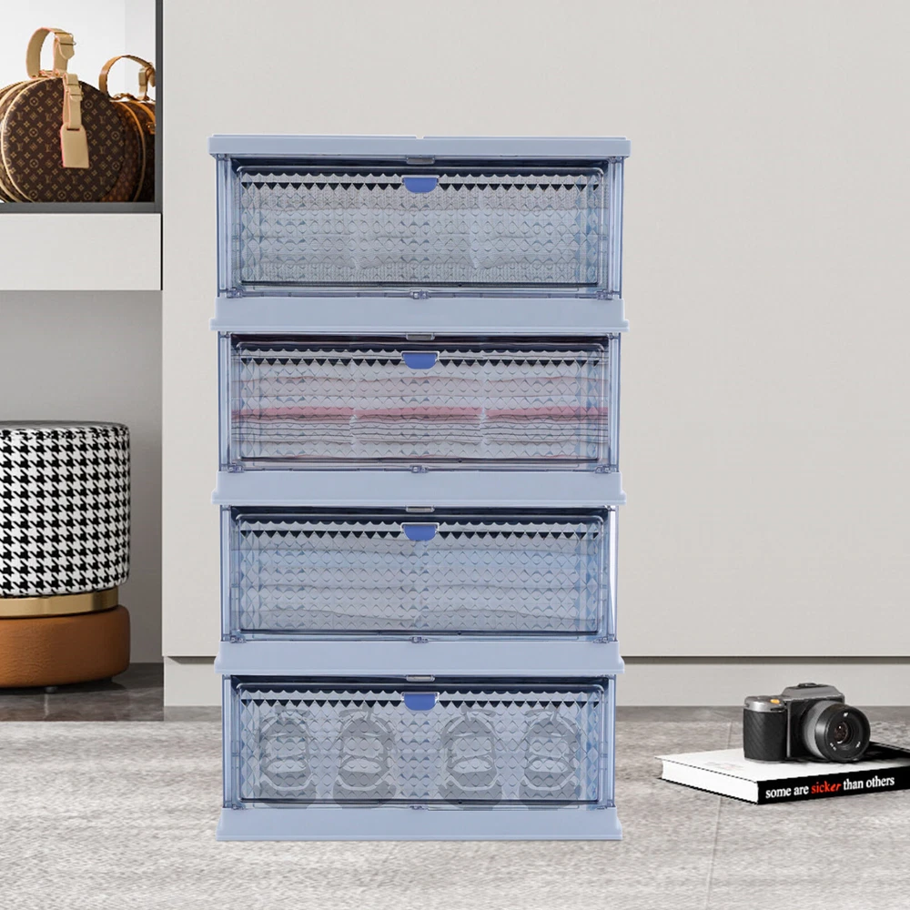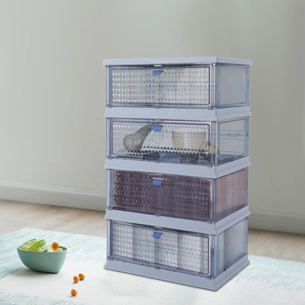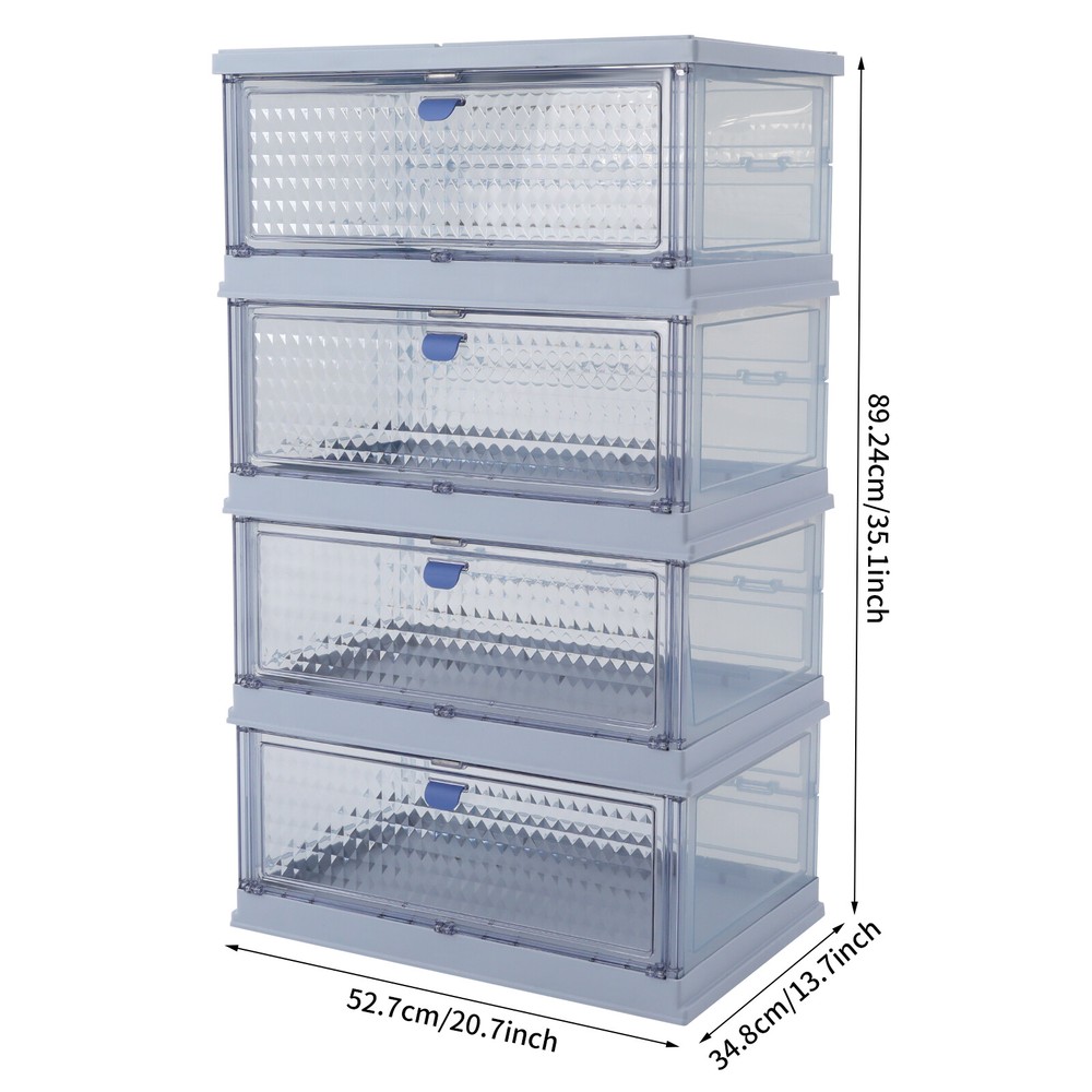 Have a nice day~ Description Do you still struggle with clutter and lack of storage space in your home? This storage cabinet will keep your room organized with its small footprint and large storage space. The strong weight-bearing capacity allows you to use it with confidence, and the foldable design makes it easy to carry and store. If you want to have a neat space, this product is an indispensable helper for you. Key Features Solid and Durable : This product is made of high-class PP and PS, which is anti-corrosion, anti-rust, environmentally friendly, strong, and durable, ensuring you can use it for a long time. Spacious Storage Space : The 4-tier structure provides you with the convenience of storing different categories of items in separate sections, including shoes, snacks, pet supplies, and toys. In addition, the large top platform is convenient for placing your flower pots, bags, keys, umbrellas, and more. Thoughtful Design: The visual design allows you to see items inside at a glance, making it easier to select, access, and place items. The magnetic cabinet door will not open automatically when moving or stationary and is effective in preventing dust and insects in daily use. The diamond panel allows you to see what is inside in a way that doesn't look messy. Strong Bearing Capacity : High-class material, one-piece frame, and rectangular structure make this product withstand 14.33 lbs in each tier, so you can use it with confidence without worrying about collapsing. Foldable and Portable: You can fold this product into a smaller size for convenient storage when not in use, which will not take up much space. Simple to Use : This product adopts an integrated foldable design with a simple structure without additional assembly. You simply unfold it to start using it, thus saving time and effort. Effortless Clean : The smooth surface and simple structure make the cabinet easy to clean with water and a damp cloth (not included). Ideal Gift : Beautiful appearance and practical function make it an ideal housewarming gift for family and friends so that they can enjoy a more exquisite life. Stylish Appearance : The pleasing blue color, diamond patterns on the doors, and smooth lines make the whole product lovely and modern. Wherever it is placed, it will be beautiful scenery. Application It is suitable for storing shoes, cosmetics, books, towels, snacks, sundries, and more in entrances, kitchens, closets, study rooms, living rooms, cloakrooms, or bedrooms. Details Practical Handles : The handles on each door make it easy to open and close the doors. Smooth Edges : They not only enhance the aesthetics of the product but also improve safety during cleaning and use. Specification Color: Blue Style: Modern Shape: Rectangle Material: PP, PS Process: Injection Molding Mount Type: Floor Standing Each Tier Load-bearing Capacity: 6.5kg/14.33 lbs Number of Tiers: 4 Product Size(Unfolded): 52.7*34.8*89.24cm/20.7*13.7*35.1in Package Size: 59*24*42cm/23.23*9.45*16.54in Gross Weight: 6.55kg/14.44lbs Net Weight: 5.72kg/12.61lbs Package Included 1* Storage Cabinet Notes Please confirm the product dimensions before purchasing. Please avoid heavy impact, sharp objects, or direct high-temperature exposure during use to avoid product damage or aging. Please note that this product does not include other items shown in the picture. Please allow the slight color difference caused by the shooting light and 1-3cm error due to manual measurement and make sure you do not mind before ordering. Payment Delivery details Terms of sales About us Contact us Payment We accept ebay payment 。 Fees such as import duties, taxes are not included in the item price or shipping costs. These charges are the buyer's responsibility. Delivery details Shipping: 2-9 working days to: USA Terms of sales We maintain high standards of excellence and strive for hundred percent customer satisfaction. Feedback is very important to us. We hope that you contact us immediately before you give neutral or negative feedback, so that we can address your concerns. It is impossible to address issues if we do not know about them! About us Your satis faction is our ultimate goal. We work hard to earn your trust and future business. Our certified technicians have tested each item before shipping. The unit comes with 1 year limited warranty on all manufacturing defects. a) If you receive a defective item, you may return it or ask for a discount. Please contact us within 14 days after you receive the package. b) What you returned must be intact and in its original packaging as re? u. Customer is responsible for shipping costs of the returned item. c) We will cover the cost of shipping back t with the shipping rate indicated in the registration page. We will send you a new unit or refund the full payment you paid. Thank you. Contact us Business Hour Business Hour: Monday To Friday: 8:30 AM to 5:00 PM (Beijing China time) Due to time zones, our reply to your questions may not be immediately. But within above working time, we will reply your email within 24 hours. If it's non-workdays, please kindly be patient and wait till Monday. Please contact us with ebay message. Please feel free to contact us if you have any questions. Monday To Friday: 8:30 AM to 5:00 PM (Beijing China time) Due to time zones, our reply to your questions may not be immediately. But within above working time, we will reply your email within 24 hours. If it's non-workdays, please kindly be patient and wait till Monday. Please contact us with ebay message. Please feel free to contact us if you have any questions.