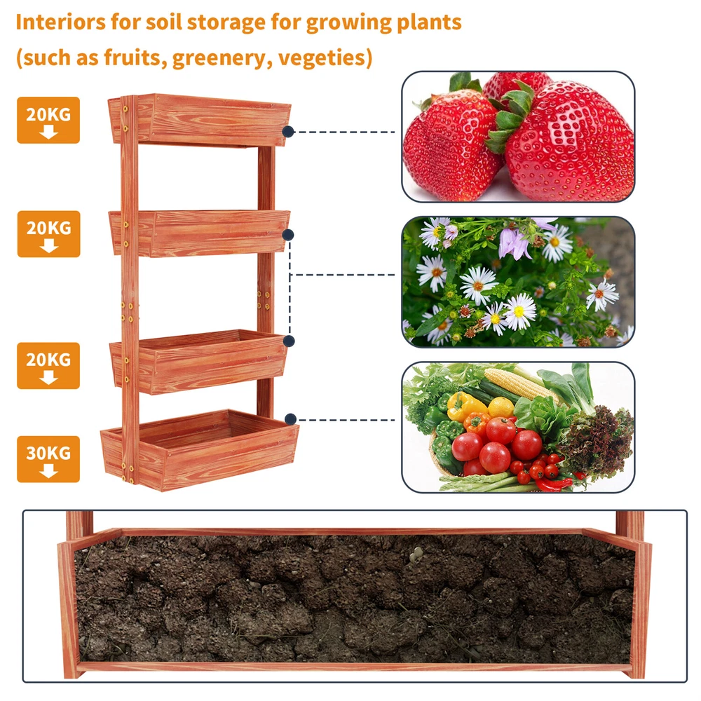4 Tier Large Ladder Garden Bed Stand Large-capacity Elevated Wood Planter Box 4 Tier Large Ladder Garden Bed Stand Large-capacity Elevated Wood Planter Box US SELLER, FAST ARRIVAL! Features: 【Vertical Vegetable Garden】 Vertical planter box, it will effectively stop any pests from entering your plantations, three-tier boxes feature holes on the side, enables you can adjust the tilting angle. 【Practical Garden Bed】 Equipped with four ladder boxes, spacious enough to cultivate a lot vegetables, fruits, herbs, greenery, flowers, keeps easy accessibility and maintenance save you from back pain from bending and caring. 【Solid & Sturdy Structure】 The garden plant bed is manufactured from solid fur wood for great durability and sturdiness, solid enough to hold almost 100kg of soil, the wood won’t be easy to crack. 【Multi-function Use】 Each planter box can be independently removed from the frame for re-arrangement, can be used as storage box for plants, fruits, books, collections, widely use in the garden, patio, backyard, balcony, apartments. 【Ergonomic & Easy Installation】 The height between every layers keep at an appropriate distance to ensure plants healthy growth, get enough sunlight, the package includes all the hardware and instruction, makes assembly quicker and easier. Specifications: Shape: Rectangular Material: Fir Wood Color: Reddish Brown Model: 4 Tiers Shelves Planter Size (from top to the bottom) Top Tier: 65x26x16cm/ 25.6x10.2x6.3 inch Middle Tier: 65x30x16cm/ 25.6x11.8x6.3 inch Third Tier: 65x32x16cm/ 25.6x12.6x6.3 inch Bottom Tier: 65x42x16cm/ 25.6x16.5x6.3 inch Weight Capacity - Top & Middle Tier: each 20kg/44 lbs Third & Bottom Tier: each 30kg/ 66 lbs Net Weight: 11.45kg/ 25.24 lbs Product Dimension: L * H total 65x141cm/ 25.6x55.5 inch Package Included: 1 x Raised Planter Bed 1 x Installation Guide Payment Terms of Sales Shipping Details Contact us About us Payment 1.We accept payment by credit card, paypal, Payoneer. 2.Upon on payment, please confirm your shipping address. Terms of Sales 1. We ship out all of our products brand new. 2. All products have passed quality inspection before shipment. Shipping Details 1.We are located in NJ, CA ,all the items will be shipped via USPS, UPS Ground, Fedex Ground with tracking number provided. 2. We cannot ship to Alaska, Hawaii & Puerto Rico Addresses. Contact us 1. If you are satisfied with the transaction pls remember to leave us a positive feedback 5-star will be much appreciated. 2. Normally your email would get replied within 24 hours (Business Hours) and your issue will be followed up carefully till we 've reached an agreement. 3. Please contact us first if you have any question or suggestion before opening a case or dispute, leaving any neutral or negative feedback. About us We are professional supplier of Home, garden and household products, such as plant stand, bahroom mirrors, TV Mount, Pet Bed, Pet Supplies, Coat racks, Home Furniture etc. Hope you can buy your favorite products in our store. We are manufacturer of bathroom mirrors for decades, our mirrors well received from over 130 countries. The first class factory and skilled technique, pls feel free to contact us if you want drop ship or large procurement. Type Raised Bed Brand UNHO Compatible Plant Type Aloe Vera, Bamboo, Bonsai, Cactus, Daisy, Flower, Herbs, Orchid, Mint, Parlour Palm, Strawberry, Snake Plant, Tree, Tulip, Water Hyacinth, Succulent, Rose, Pothos Size Extra Large Item Length 25.6inch Item Width 10.2in Item Height 55.5 inch Capacity 90kg MPN 9ANN6VACJ Features Tiered, Ergonomic, Heavy duty Material Fir Wood Shape Rectangular Indoor/Outdoor Indoor & Outdoor Set Includes Raised Bed