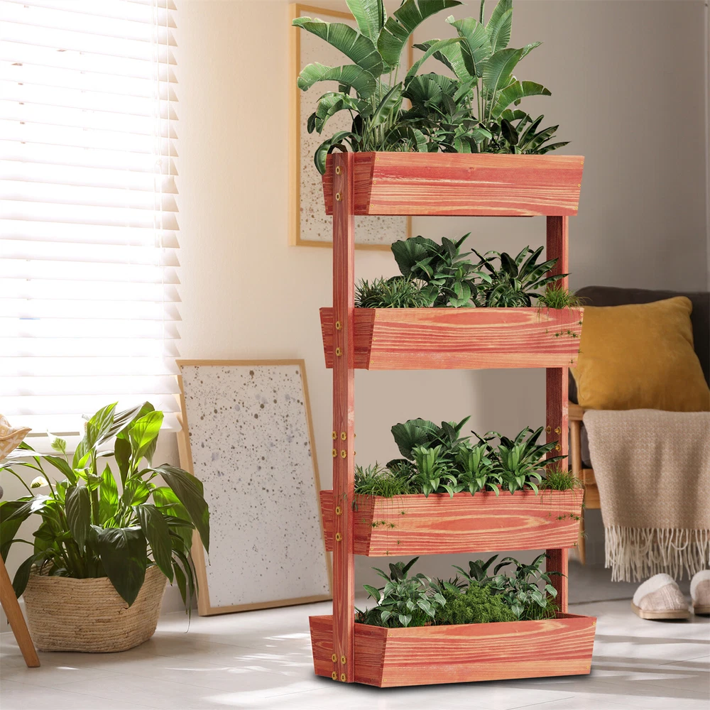 4 Tier Wooden Ladder Garden Bed Stand Extre Large Elevated Planter Fruit Box