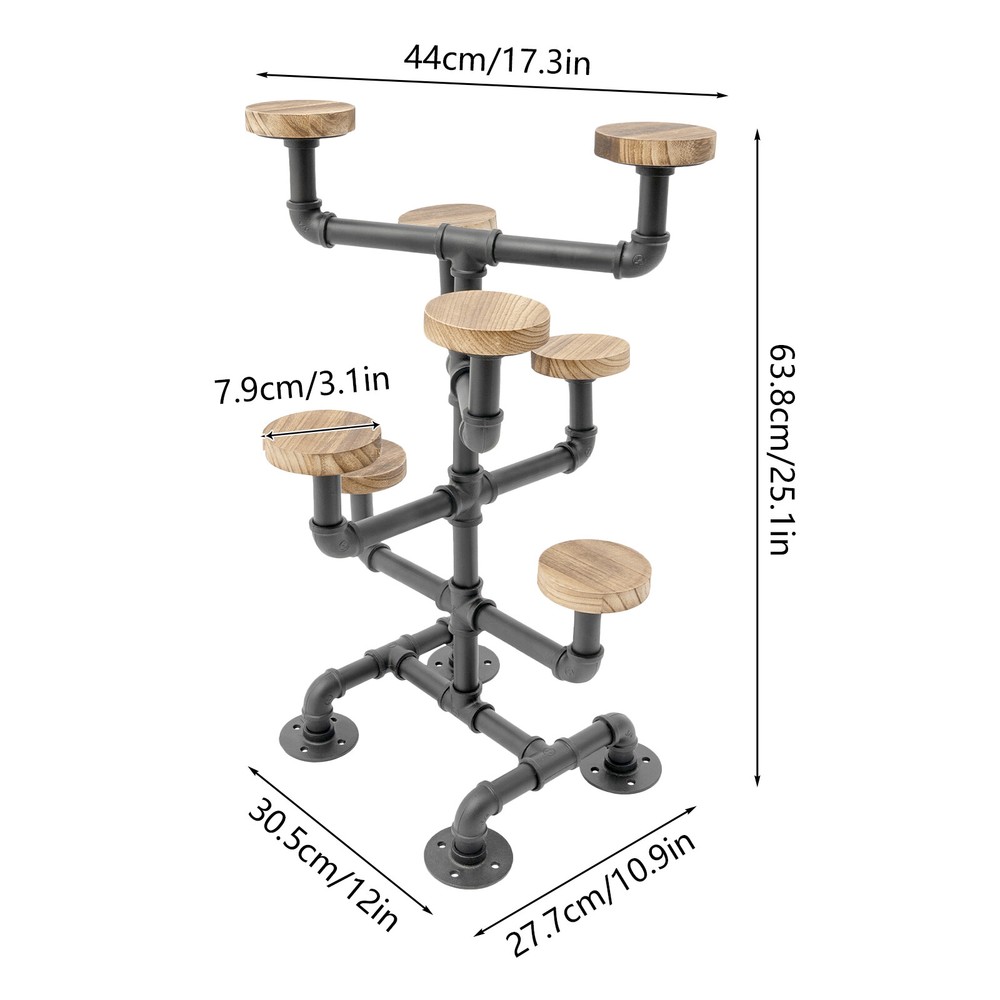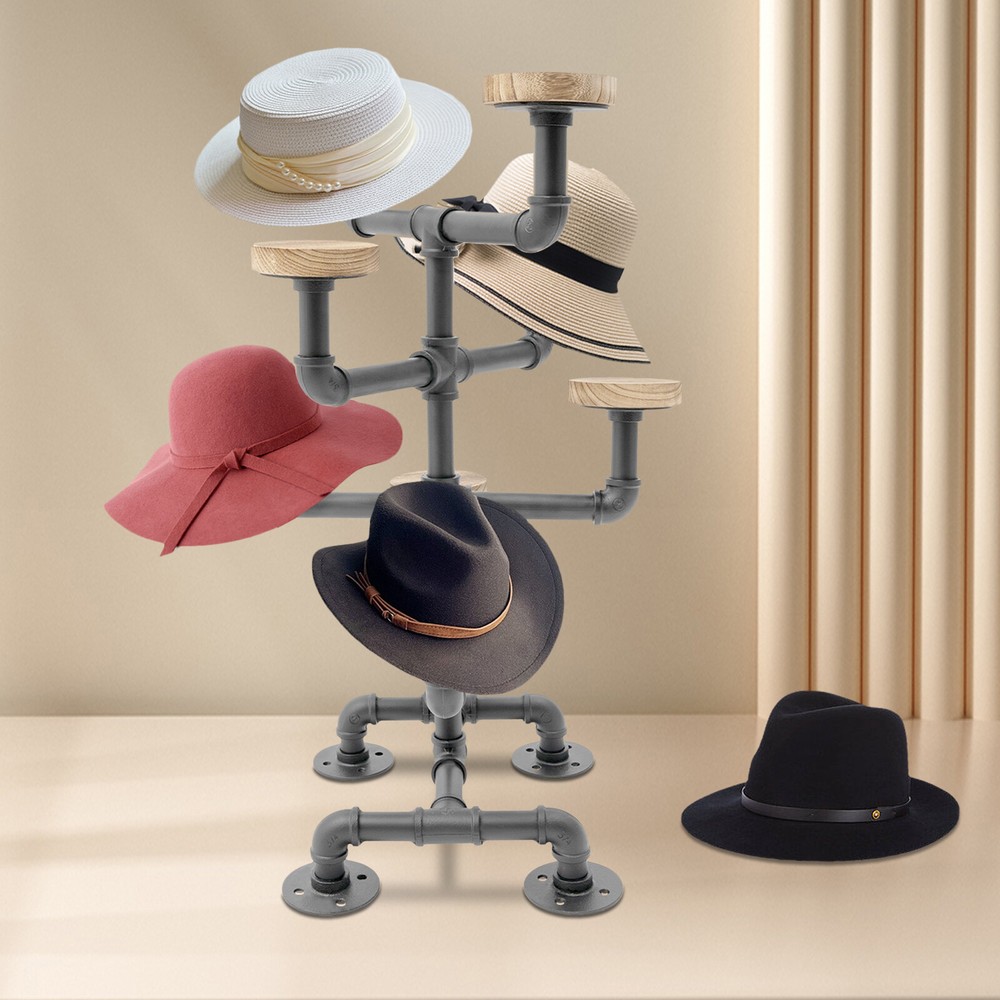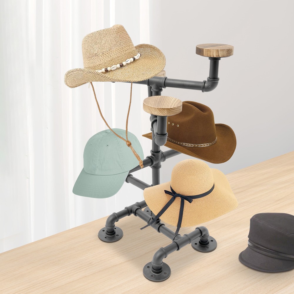 4 Tiers Industrial Hat Display Stand Hat Holder Rack w/ 8 Round Hangers Black US