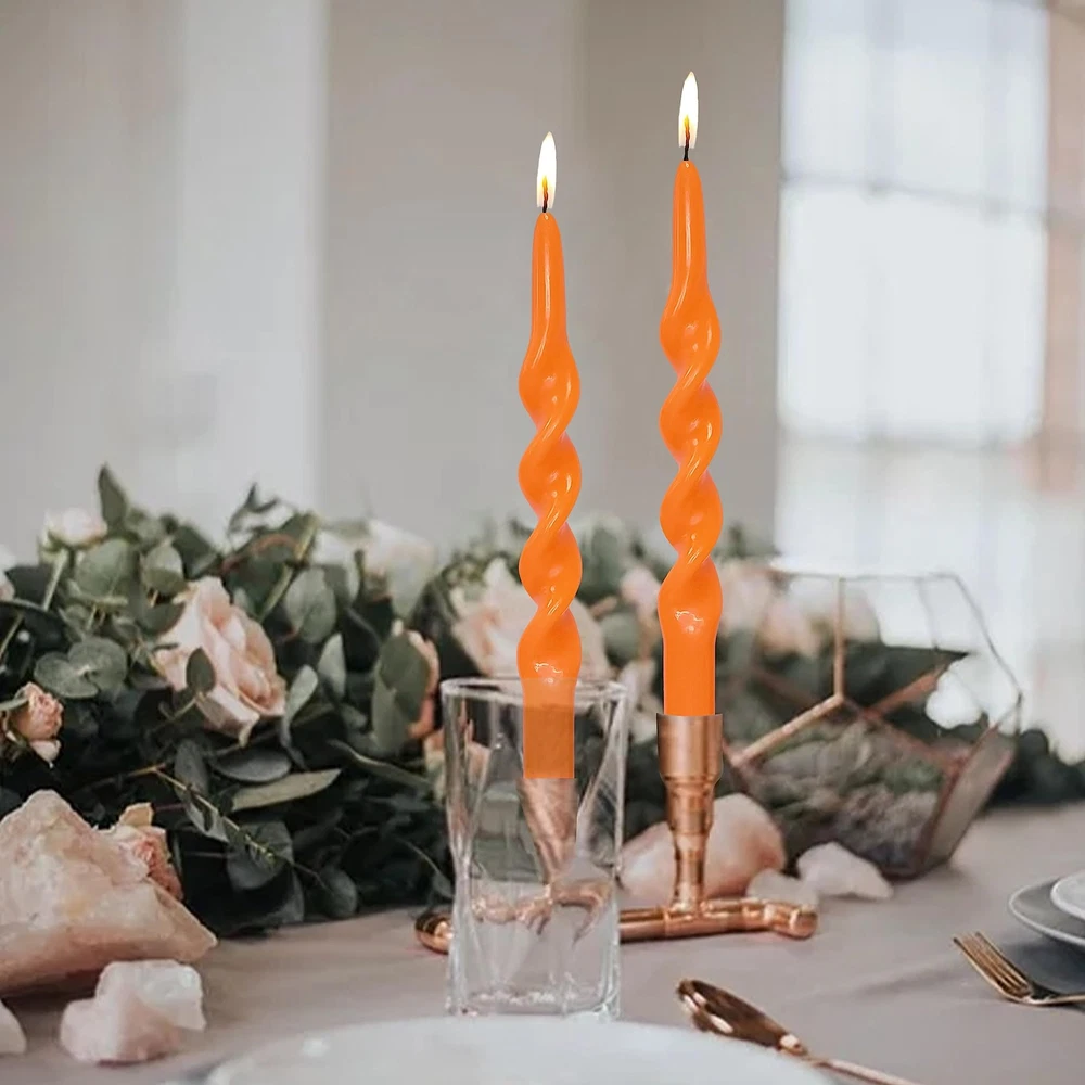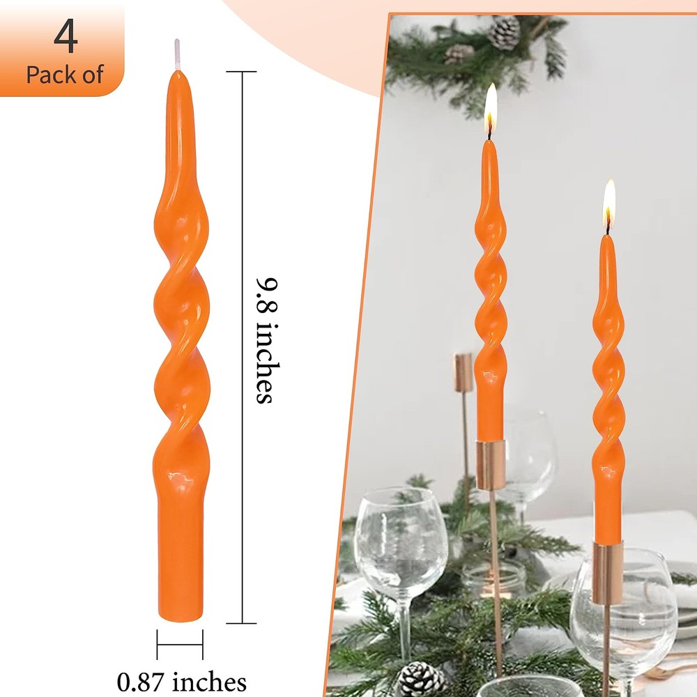 4 Unscented 10-Inch Orange Twisted Taper Candles for Christmas Decor
