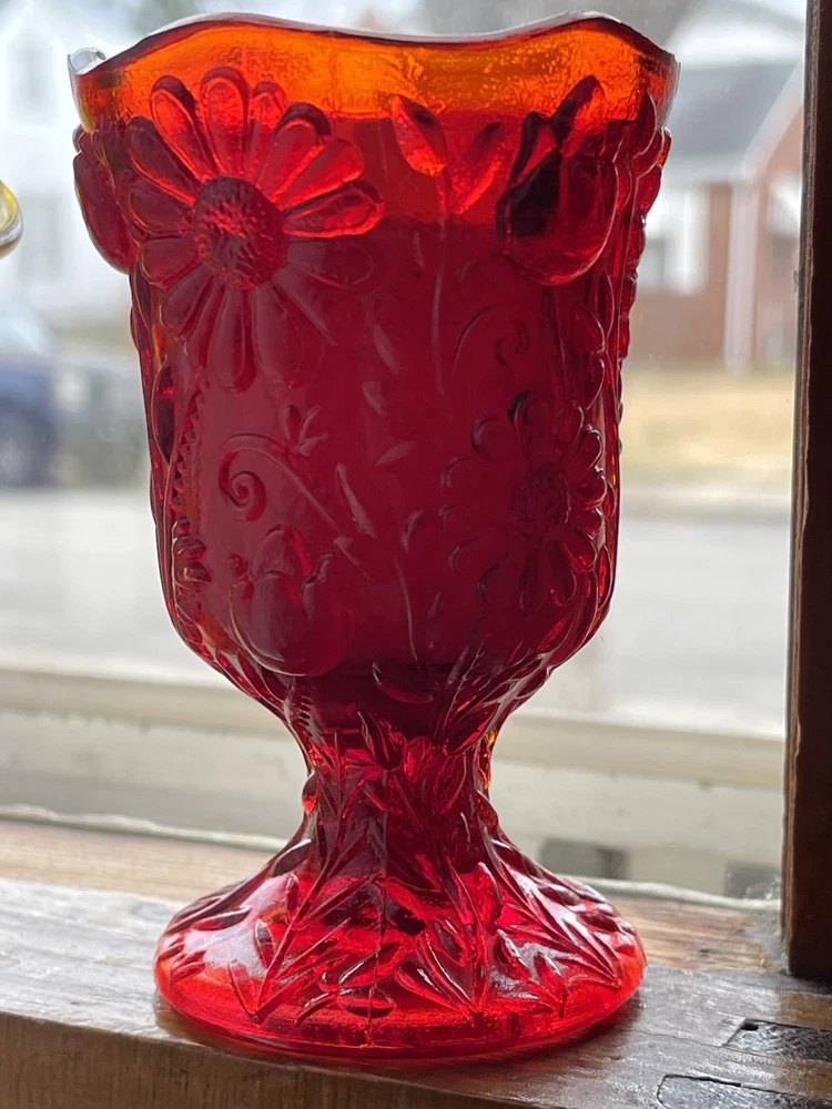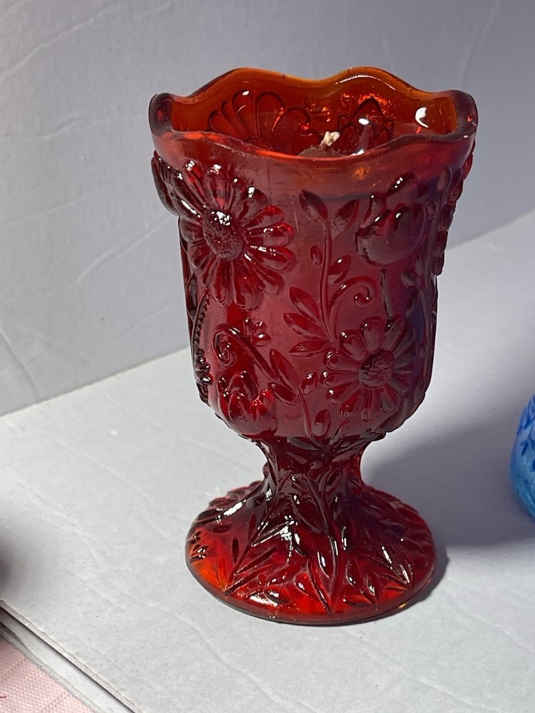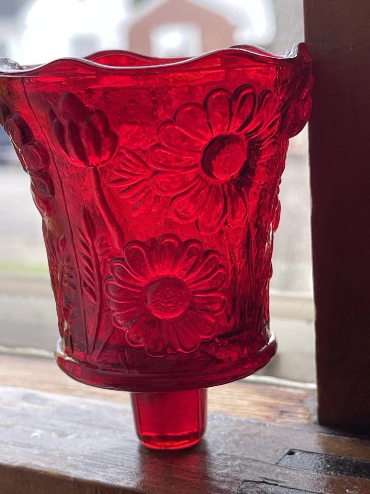 Original/Reproduction: Original Room: Any Room Color: Red Model: Peg Votive Cups Pattern: Daisy Handmade: No Subject: candle holders Material: Glass Antique: No Engraved: No Theme: Votive Cups Number in Pack: 4 Customized: No Size: Small Department: Adults Country of Origin: United States Item Width: 3 in Occasion: All Occasions Suitable For: Mini Candle, Votive, Tealight Item Height: 3.5 in Item Length: 3 in Brand: Homco Type: Candle Holder Finish: Bright