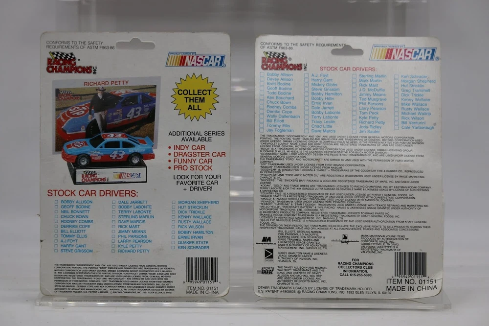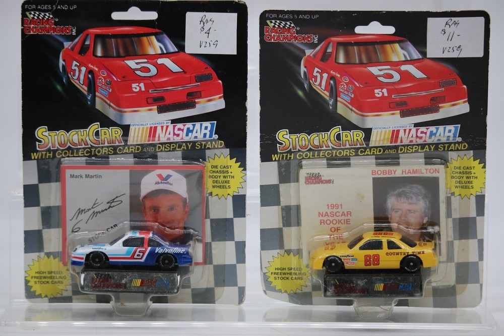 Lot of 4 new racingin champions 1/64 scale cars. Boxes have creases and some of the bubbles are dented. Bobby Hamilton Mark Martin Terry Labonte Bobby Hillin Look closely at the pictures to see further details. We ships USPS PLEASE see photos for detailed condition!! PLEASE LOOK AT THE PHOTOS CAREFULLY BEFORE PURCHASING!! If you are purchasing more than one item from us and would like combined shipping, PLEASE request an adjusted invoice from us while still in the cart and BEFORE paying. eBay does not usually calculate combined shipping accurately and you might get overcharged. Please be aware that when we photograph items, we use lighting that will show the details well. Although we try to present the product as accurately as possible, the lighting may affect the overall look of the item by appearing lighter/darker or possibly a different hue than the actual item. Depending on the type of lighting you have in your home, there may be some differences between the photos and the actual item. If this is a concern of yours, please feel free to request additional photos made in natural lighting or ask for a more detailed description of the item PRIOR TO PURCHASE! There may be pieces that are missing or broken including, but not limited to, couplers, brake wheels, steps, ladders, railings, etc. May need detailed cleaning. PLEASE NOTE: We greatly appreciate your interest in our item for sale. We look forward to a pleasant, quick and satisfying transaction for everybody, so please note the following information before bidding. Thank you! ITEM DESCRIPTIONS: * We will try to describe items well and provide plenty of photos. Please review these carefully before bidding or purchasing. * Only the items pictured and described are what you will receive when purchased. * We will occasionally offer an item clearly marked "AS-IS". This means that we are not sure if it works because we are unable to test it for whatever reason. We will offer these at a discounted price then a similar "working" item. It is possible that these items will work fine, but it also is possible that these items are more useful for their parts. Please only bid on or purchase these items if you are well aware of this, as we will only provide refunds of actual item price (no shipping cost refunds) for these items. * If you have any questions that aren't addressed by the descriptions or photos, please feel free to ask before you bid. SHIPPING: * We usually do not offer shipping to international addresses, but ARE WILLING TO TAKE CONSIDERATIONS. * We try to pack items as carefully as possible, but damage may occur during shipping. If you receive an item that was damaged in shipping, please contact us and we will work with you to resolve the problem. * We will combine shipping costs for all items the same buyer purchases from us within 2 days. Please wait to pay for items until you're done shopping with us. Please contact us if you're expecting to buy more items from us, or to have us adjust the shipping costs. * We will usually ship items out within 24 hours of payment being received Sunday through Friday at noon. We will notify the buyer if there will be a delay in shipping for some reason. Please allow additional time for holidays and weekends when the post office is closed. If payment is received after noon (EST) on Friday, the item might not be shipped until the following Monday. * We do try to recycle shipping materials as much as possible. RETURNS: We abide by eBay's Money Back Guarantee. We definitely want our customers to be happy with their purchase! You may return an item within 30 days of receiving it with the following guidelines: * If the item is defective or damaged (unless we clearly marked the listing "AS-IS"), the buyer will receive a full refund after the buyer returns it and it is received by us. Customers who falsely claim their item is defective, damaged, or not as described in order to receive a full refund and free return shipping will be permanently blocked from making future purchases from us. * If the item is as described (including "AS-IS" items) and the buyer decides for any other reason than defective/damaged to return it, only the actual price of the item will be refunded once it has been returned and it is received by us. The buyer will be asked to pay all original and return shipping charges. This includes all reasons other than defective/damaged, including wrong size, wrong type, changed mind, etc. All "AS-IS" items will fall into this category of return. Please make sure the item is what you want before purchasing it. * Please contact us before initiating a refund request. FEEDBACK: We always leave feedback at the end of transaction. We consider the transaction to be over when we receive feedback from the buyer confirming the item arrived satisfactorily. If you are unsatisfied with your purchase please contact us before leaving neutral or negative feedback. WE APPRECIATE POSITIVE FEEDBACK IF YOU ARE SATISFIED WITH YOUR PURCHASE! THANK YOU FOR YOUR INTEREST IN THIS ITEM!