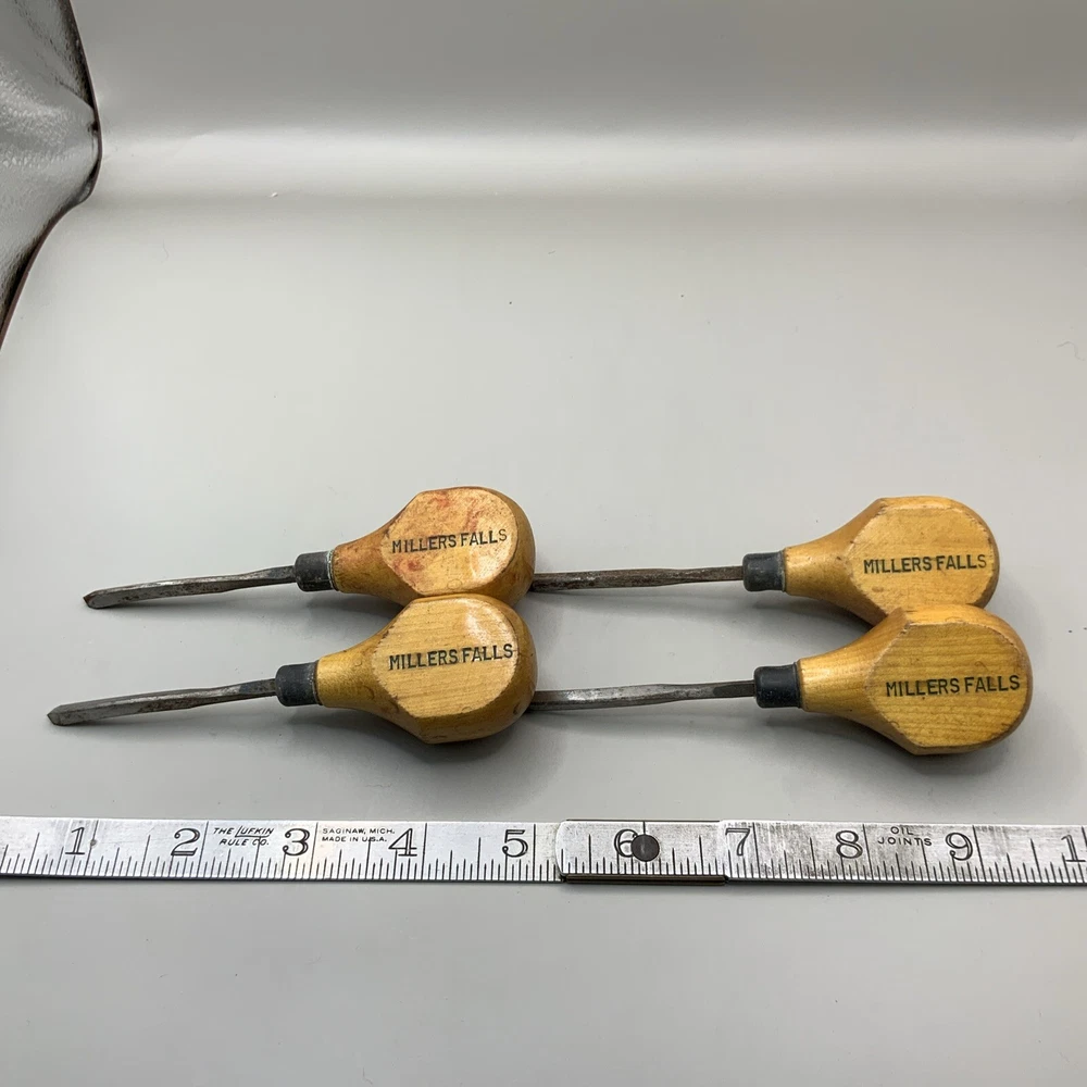 4 Vintage Miller Falls Wood Carving Palm Chisel Gouges See Pics.