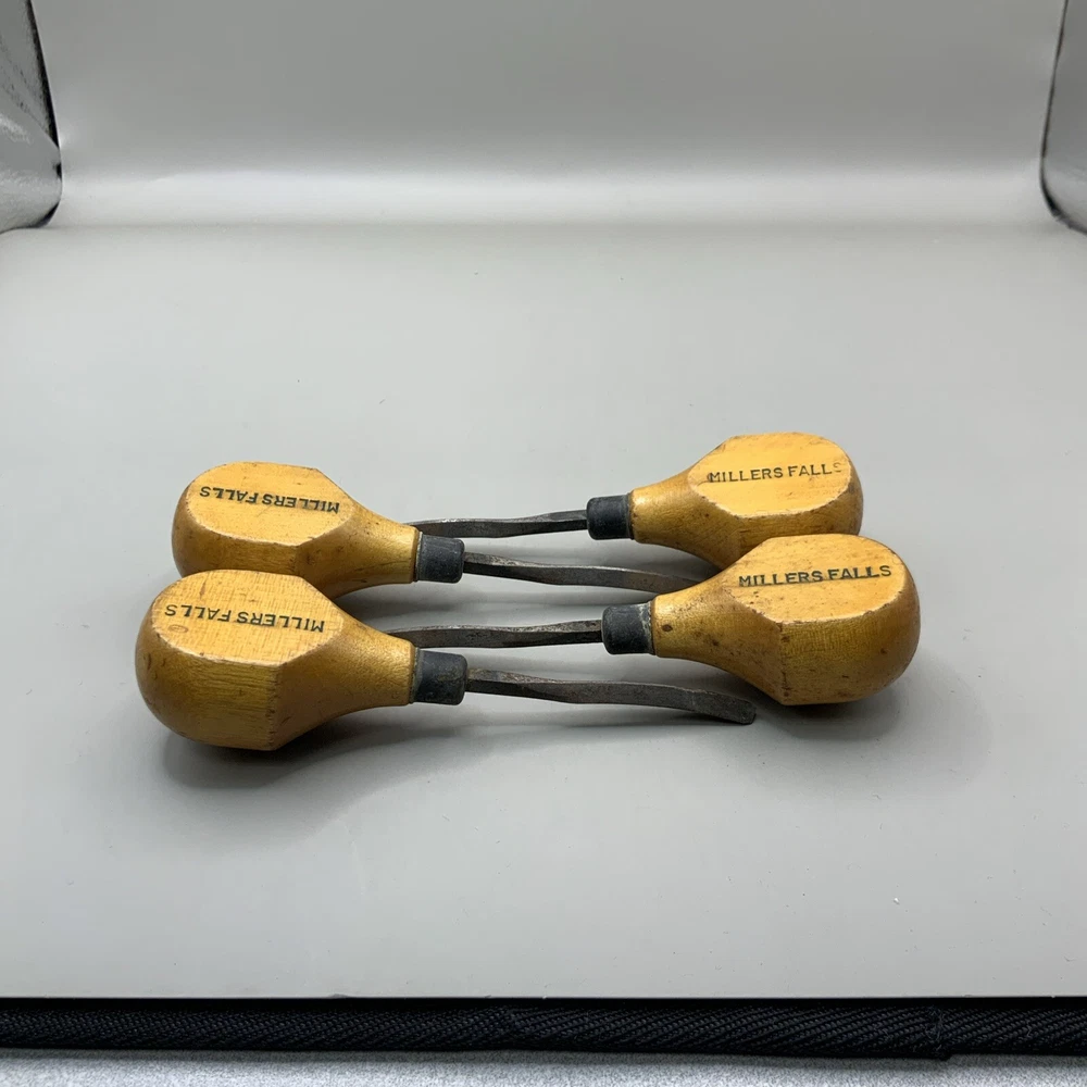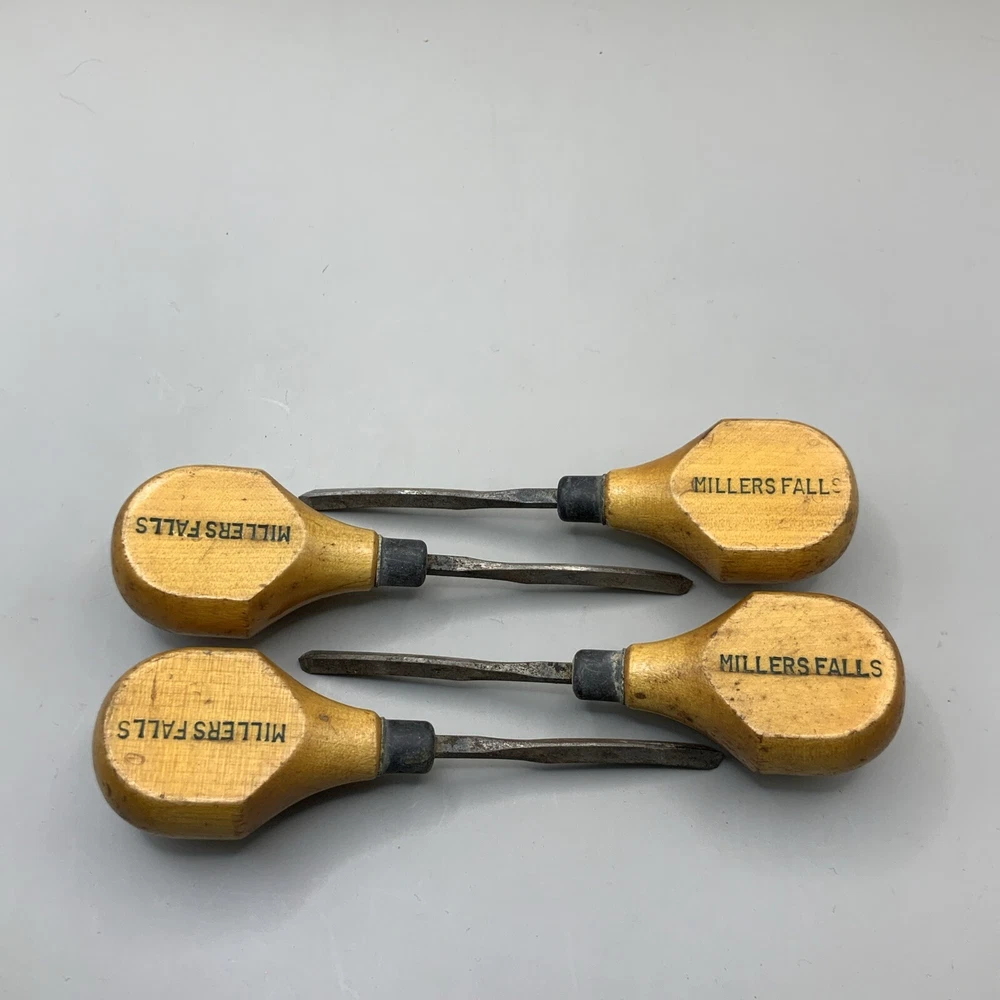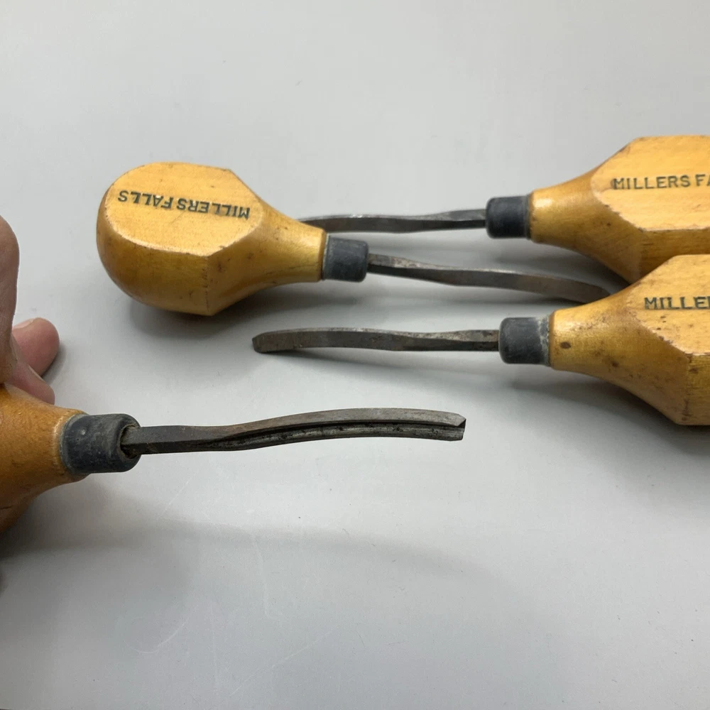 4 Vintage Miller Falls Wood Carving Palm Chisel Gouges See Pics.
