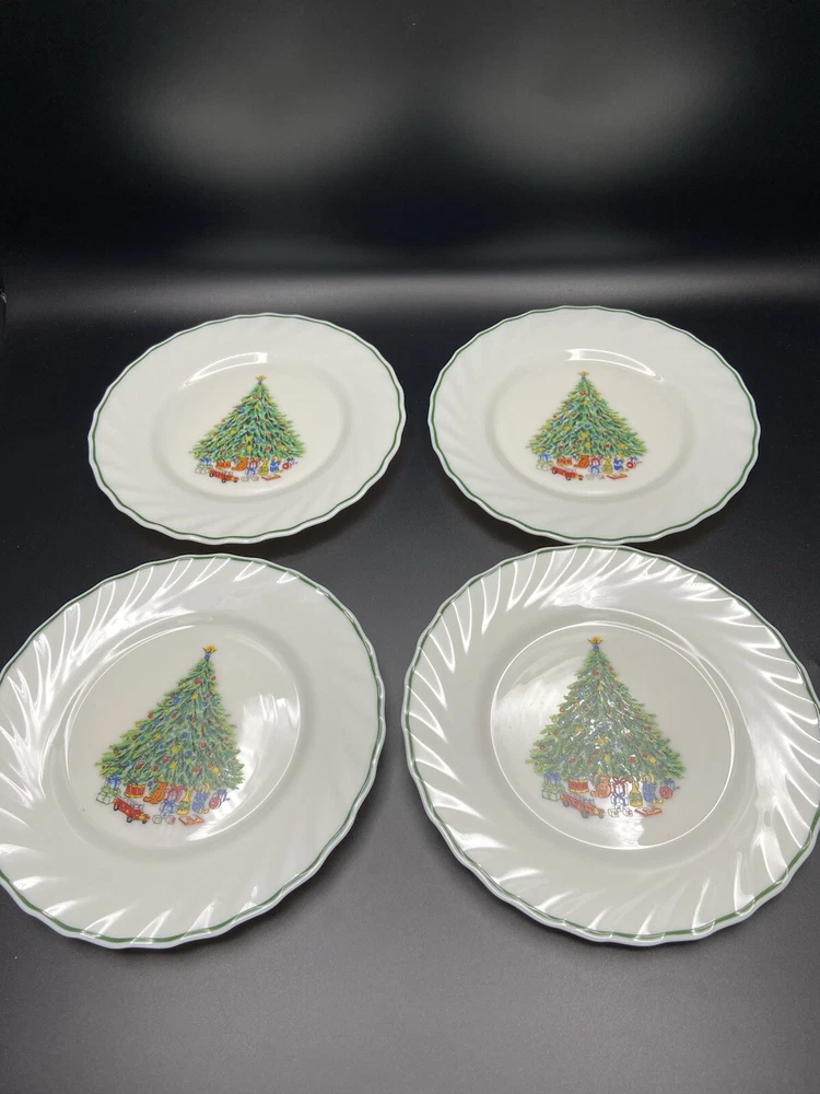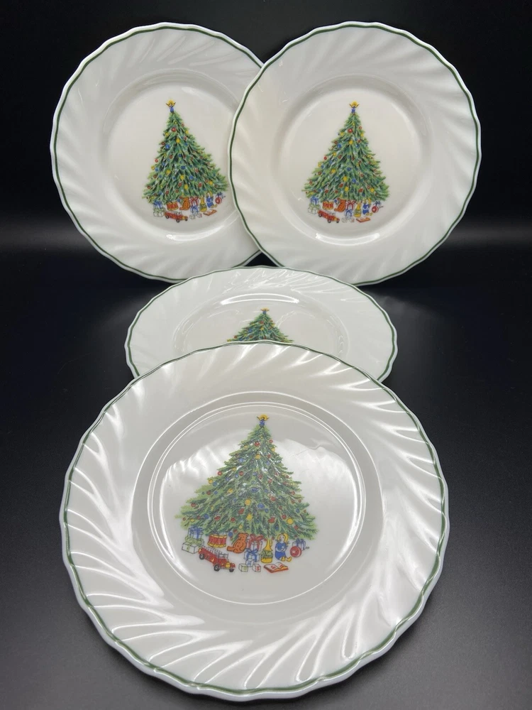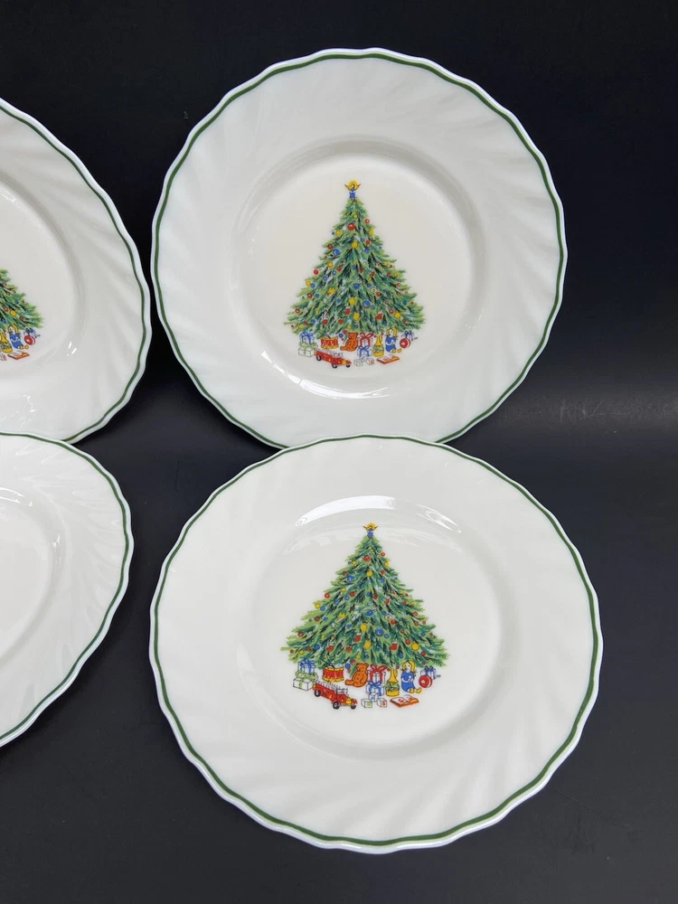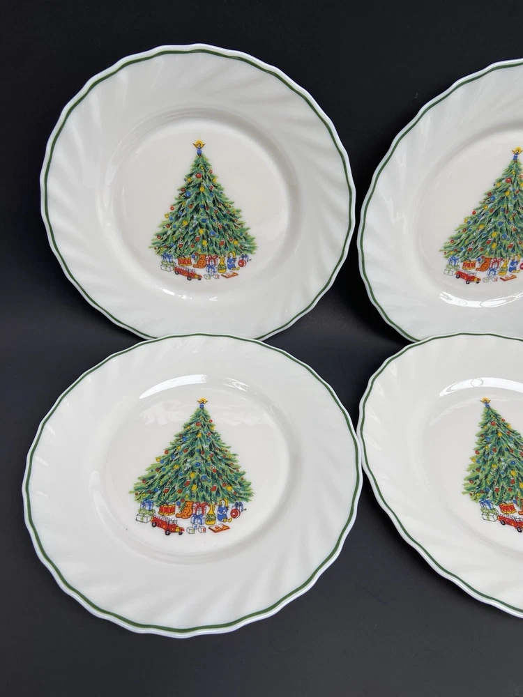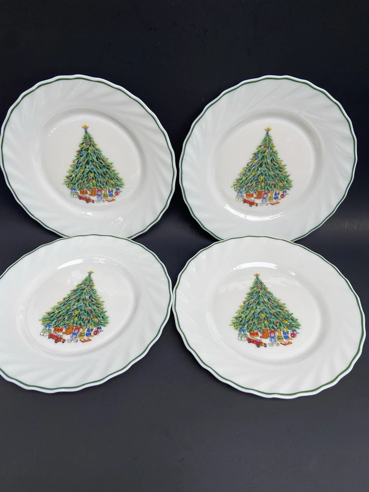 4 Vintage The House Of Salem Noel Porcelle Salad Plates 7.75”Christmas Tree GUC