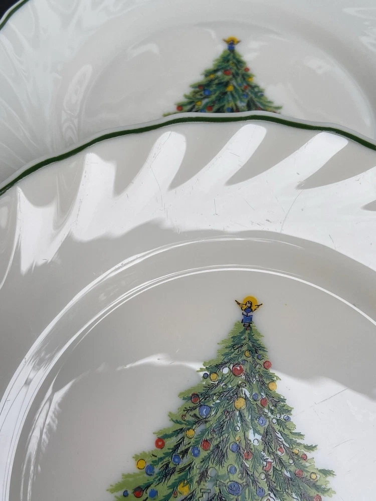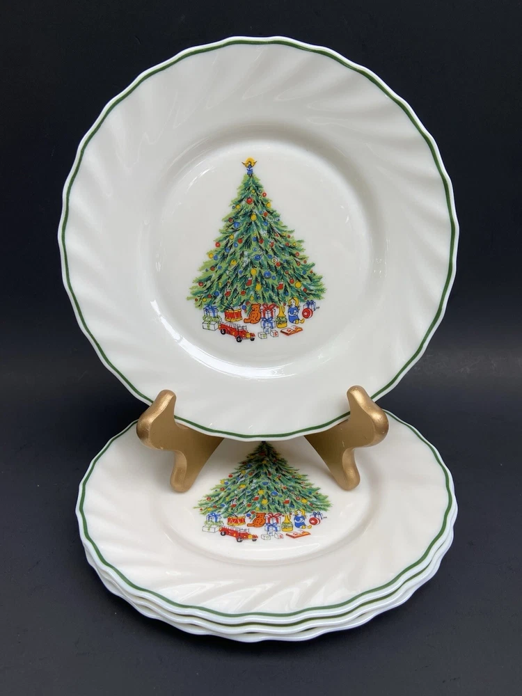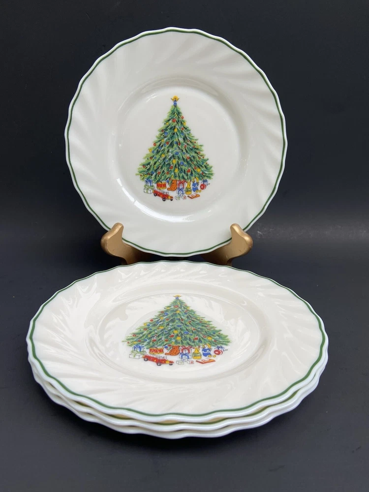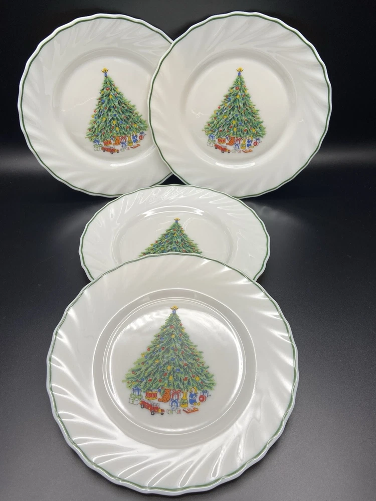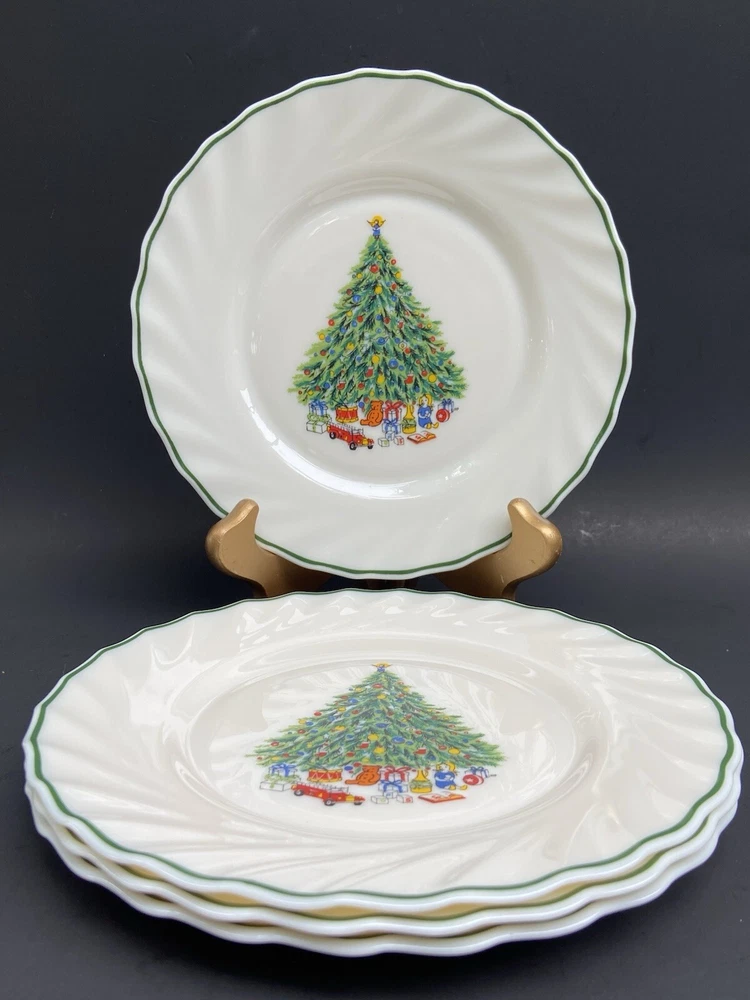 4 Vintage The House Of Salem Noel Porcelle Salad Plates 7.75”Christmas Tree GUC
