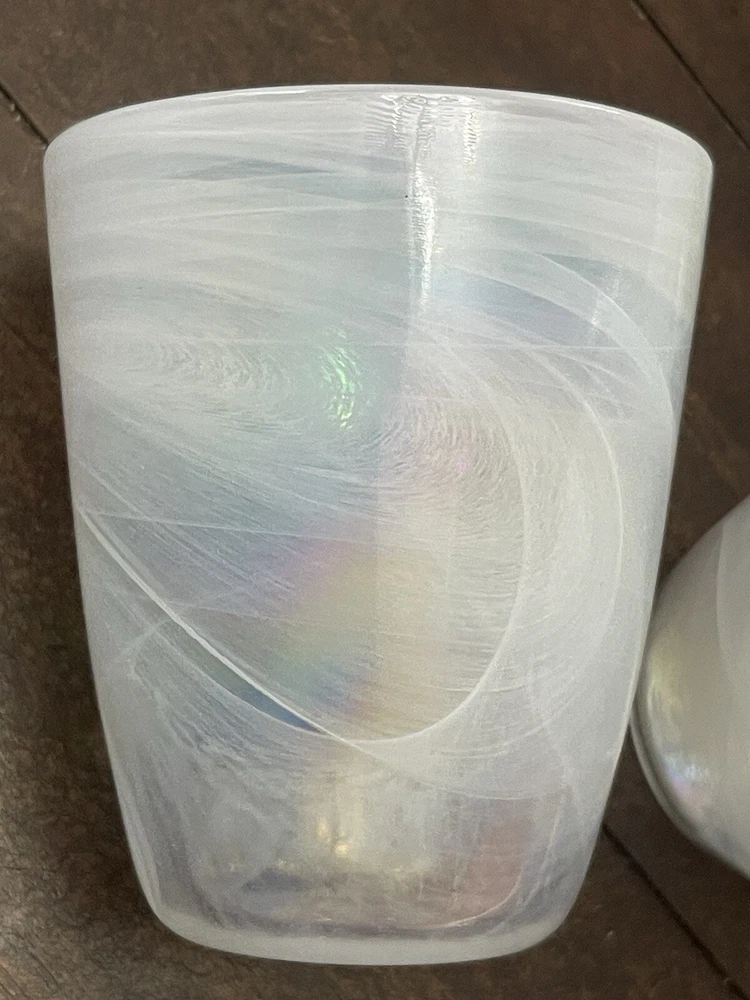 Add a touch of elegance to your home bar or kitchen with these 4 white opal iridescent tumbler glasses. The round shape and swirled glass feature a unique and stylish design that is perfect for all occasions. These glasses are made of high-quality glass material and are machine washable for easy cleaning. Each glass has a height of 4.3 inches and can hold your favorite drinking or juice drink. These glasses are perfect for a unisex adult and come in a set of four pieces. The arctic theme and art deco style make these glasses a great addition to your home decor.