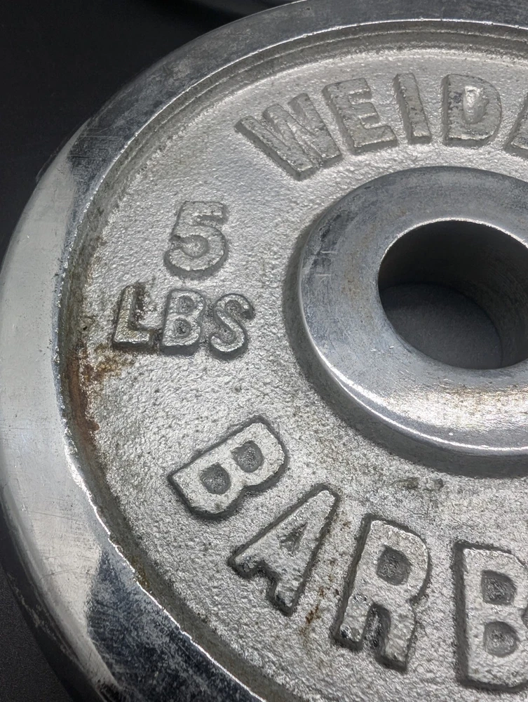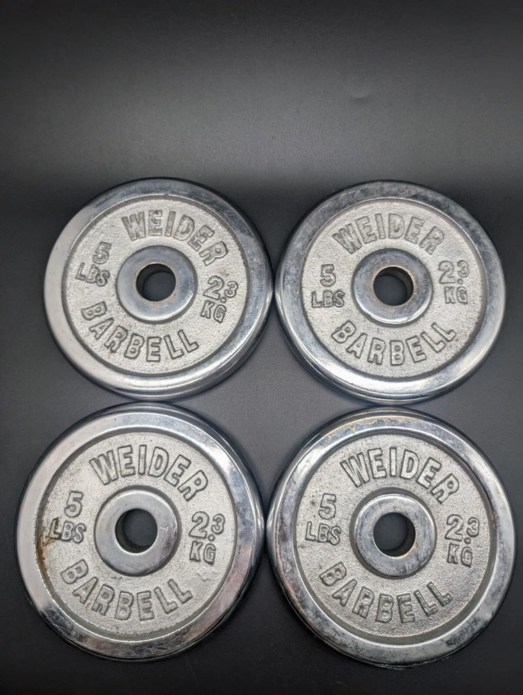 4 X 5 Lb Weider Weight Plates Chrome 1” Hole Standard Grip Total 20 Pounds VTG