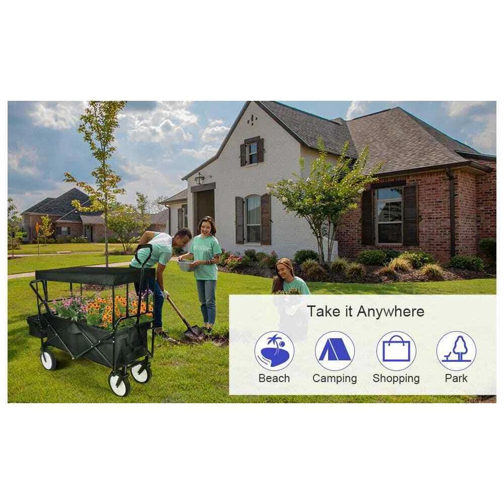 4 cu.ft.Steel Folding Portable Garden Cart w/Removable Canopy,8in.Wheels,Adjusta